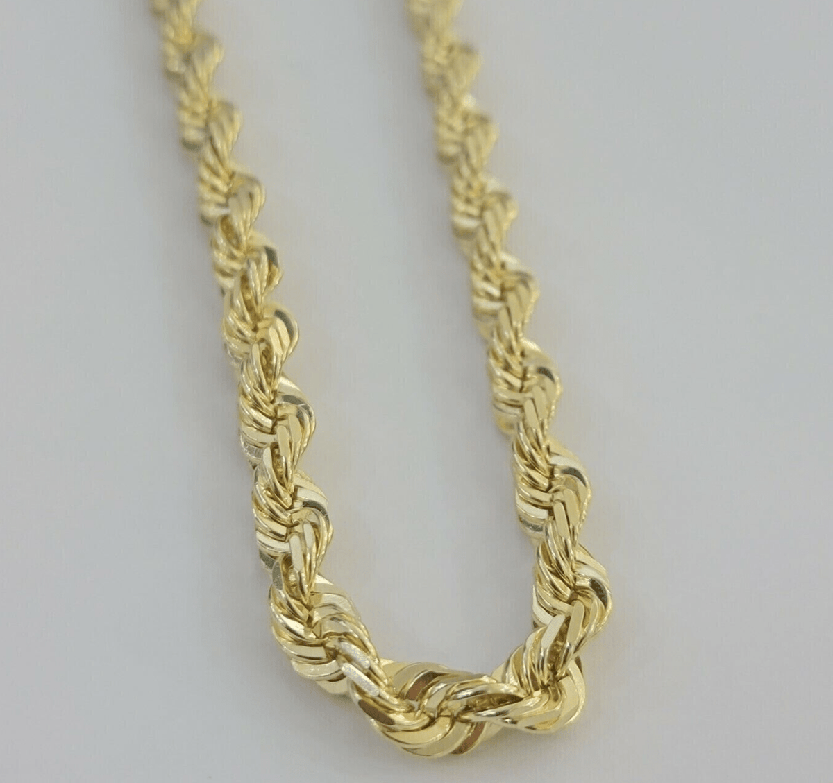 7mm Rope chain Necklace Solid 10k Yellow Gold Diamond Cuts 28 Inch Long