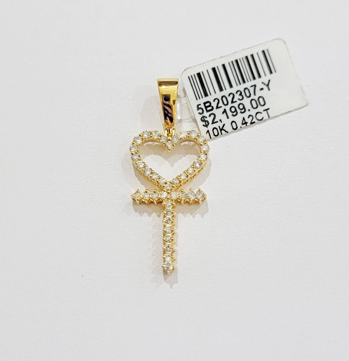 Ladies charm pendant Real 10k gold Natural Diamonds Heart Ankh Cross For Women