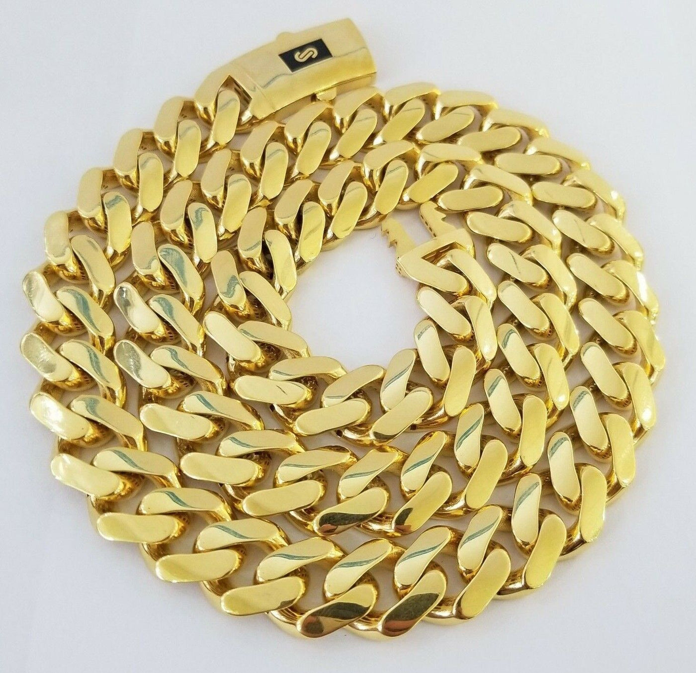 Real 10k Gold 15mm Mens Chain Royal Link Miami Cuban Monaco 24" Plain Necklace
