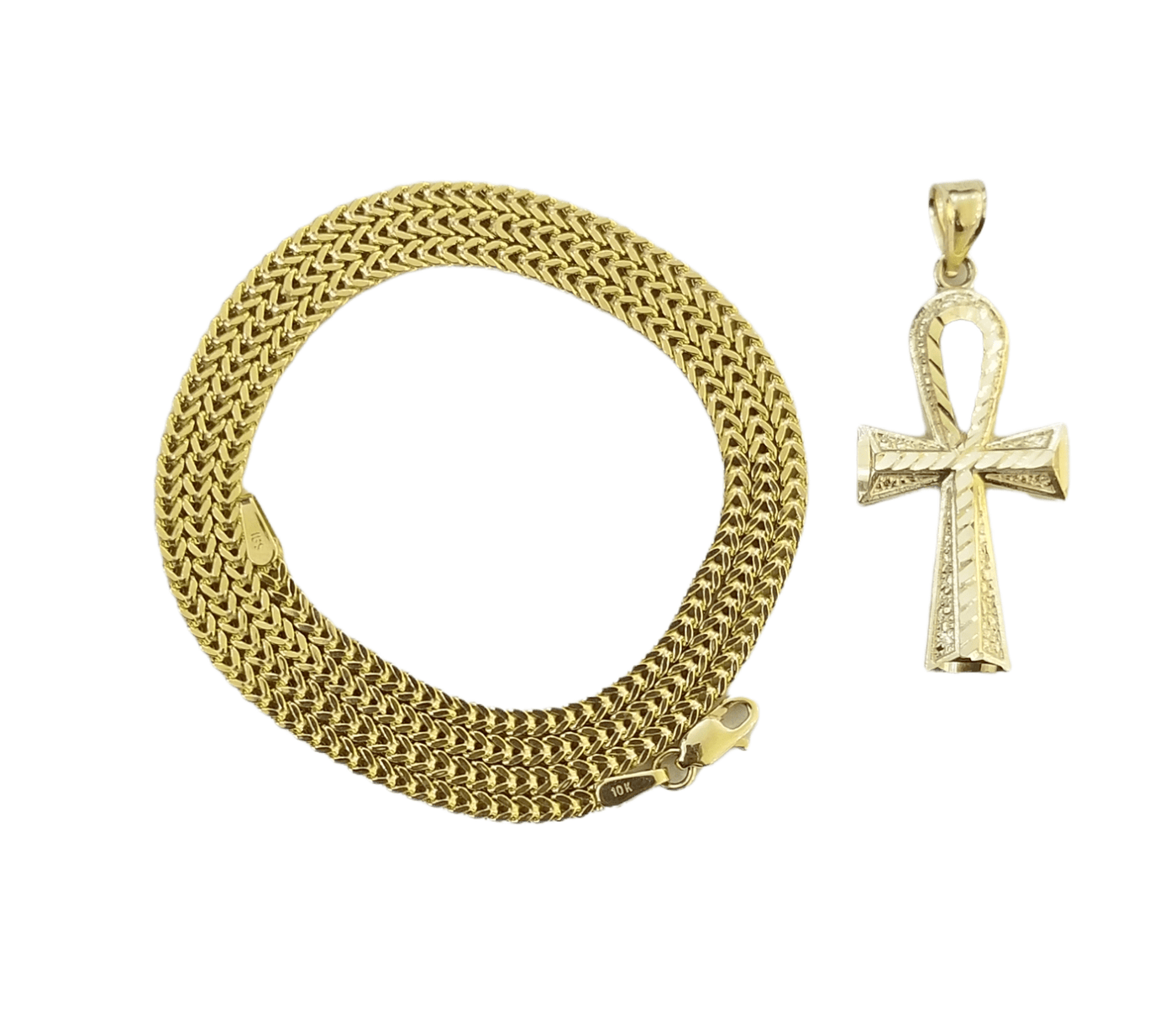 Is Presenting You with This Absolutely Stunning Real 10k Yellow Gold Ankh Cross Charm Pendent Franco chain 2mm in width and, 18-30 Inches in length,�� lobster clasp.����These Beautiful chains will not tarnish, discolor, or fade because they are Pure 10K Gold.��We also have them in various another length. Please feel free to contact us if you have any queries regarding the item.��
