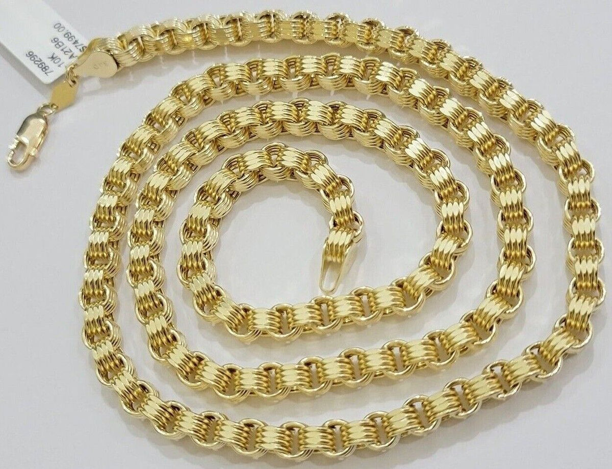 10 KT Yellow Gold ( Real , Not plated , Not filled ) Box Byzantine chain. The Width of the necklace is 4mm-7mm in Various Length stating From 20 Inches, 22 Inches and 24 Inches, 26 Inches, 28 Inches. The Clasp is Lobster Lock. The chain is considered durable. If you are not happy with the way it looks or feels, we do offer