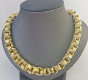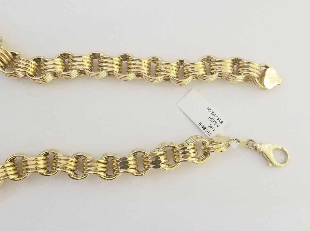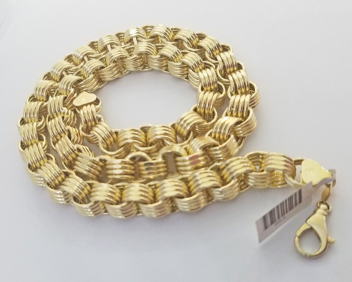 Is Presenting You with This Absolutely Stunning Real 10k Yellow gold Byzantine Chain 11mm, 24 Inches with Lobster Lock . These Beautiful chains will not tarnish, discolor, or fade because they are Pure 10K Gold. We also have them in various another length. Please feel free to contact us if you have any queries regarding the item.