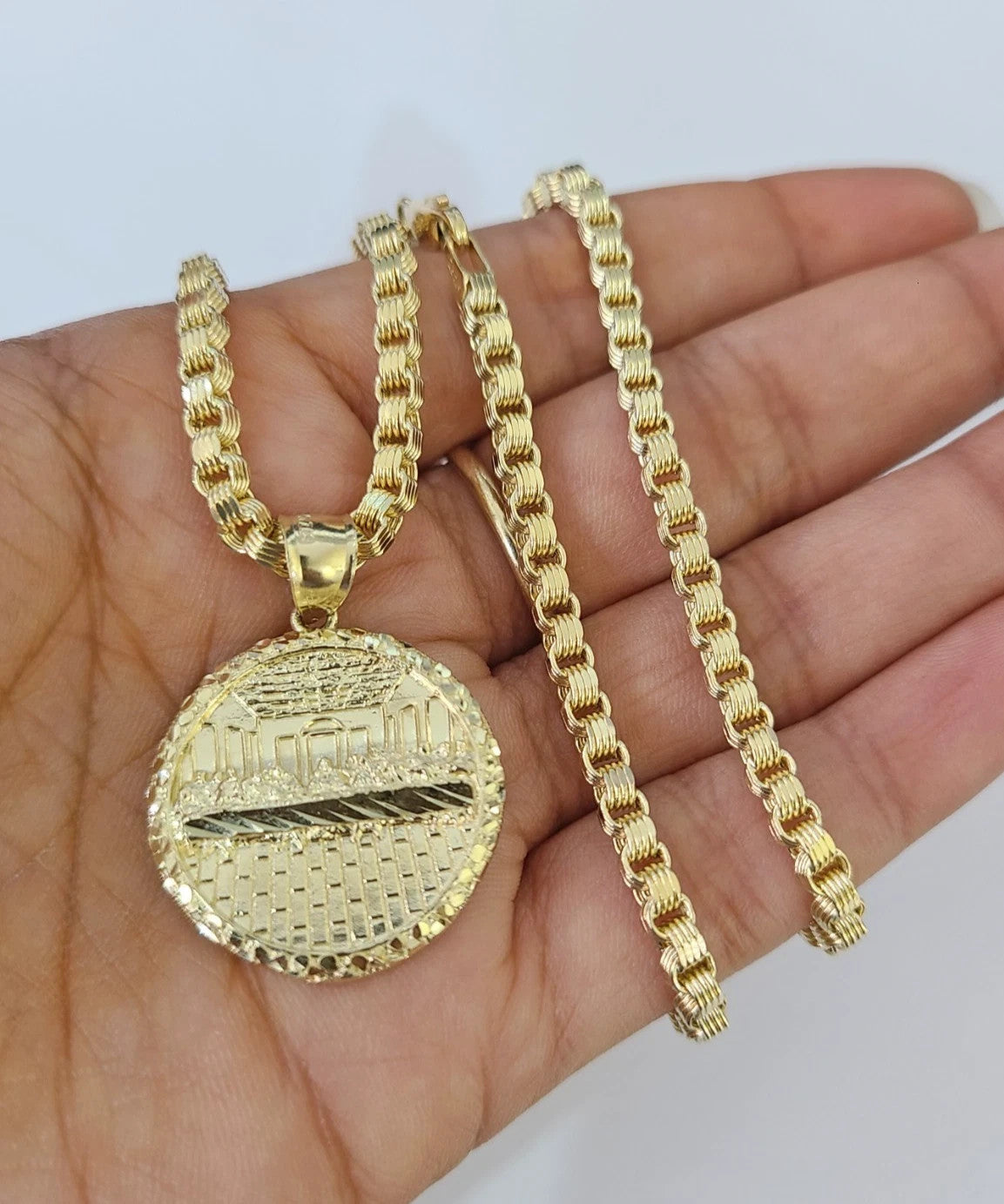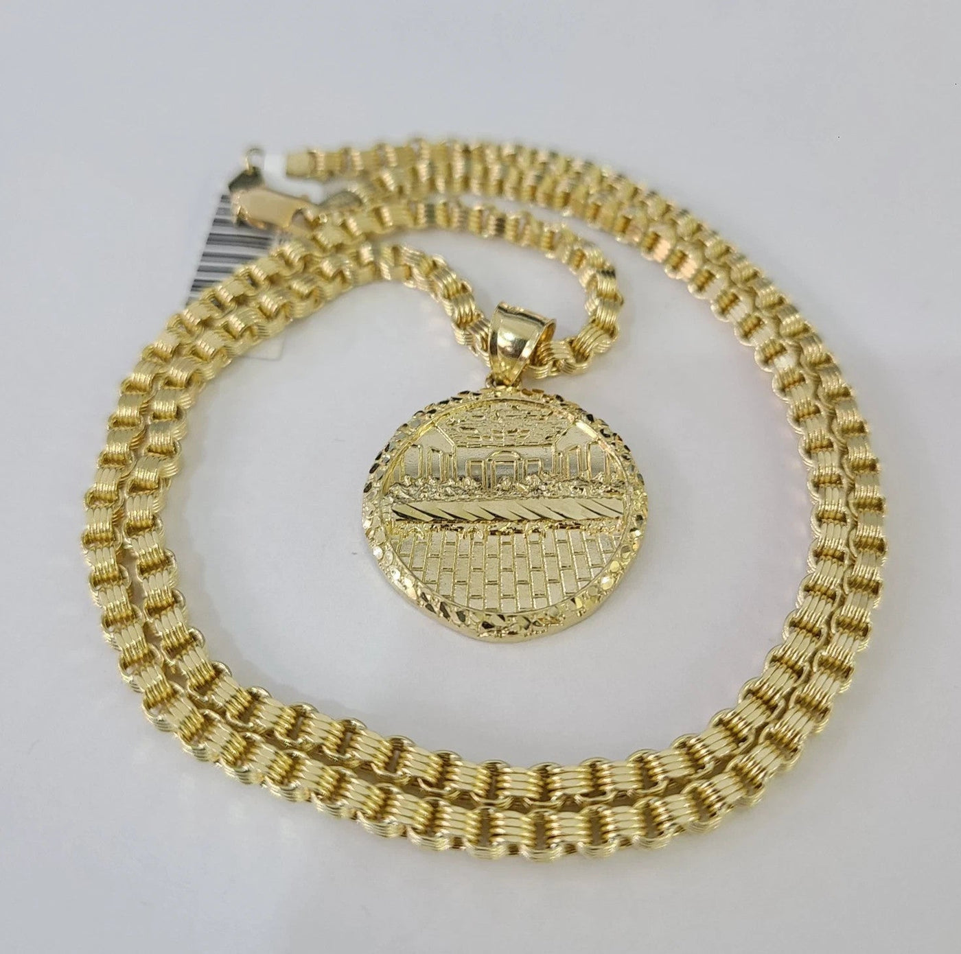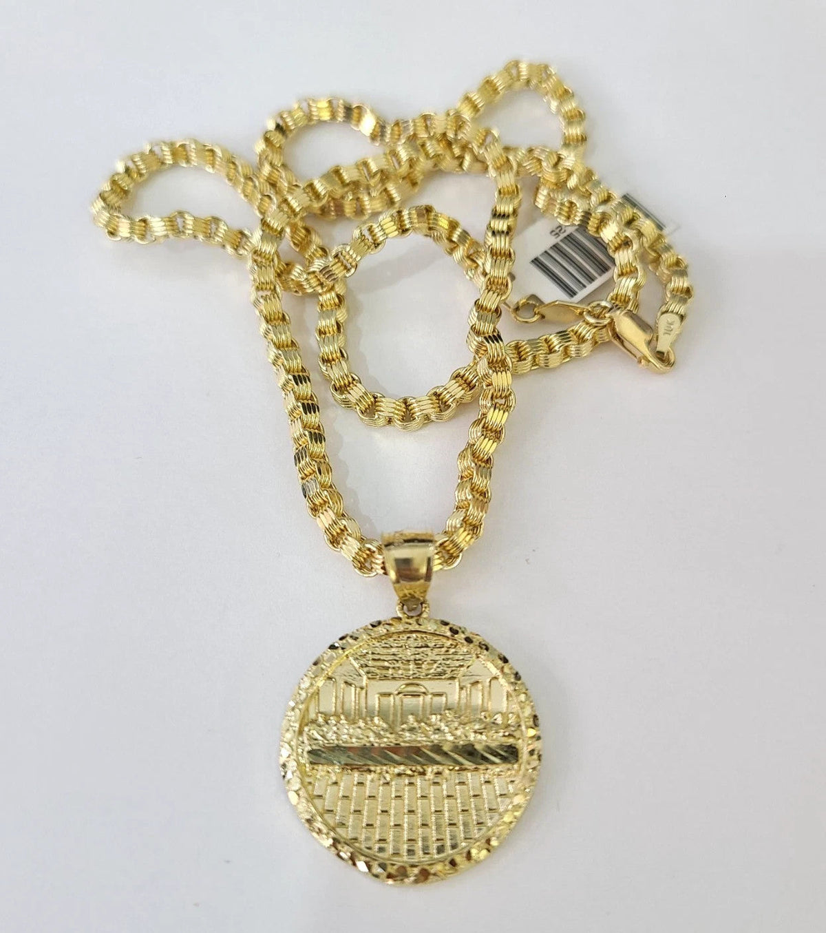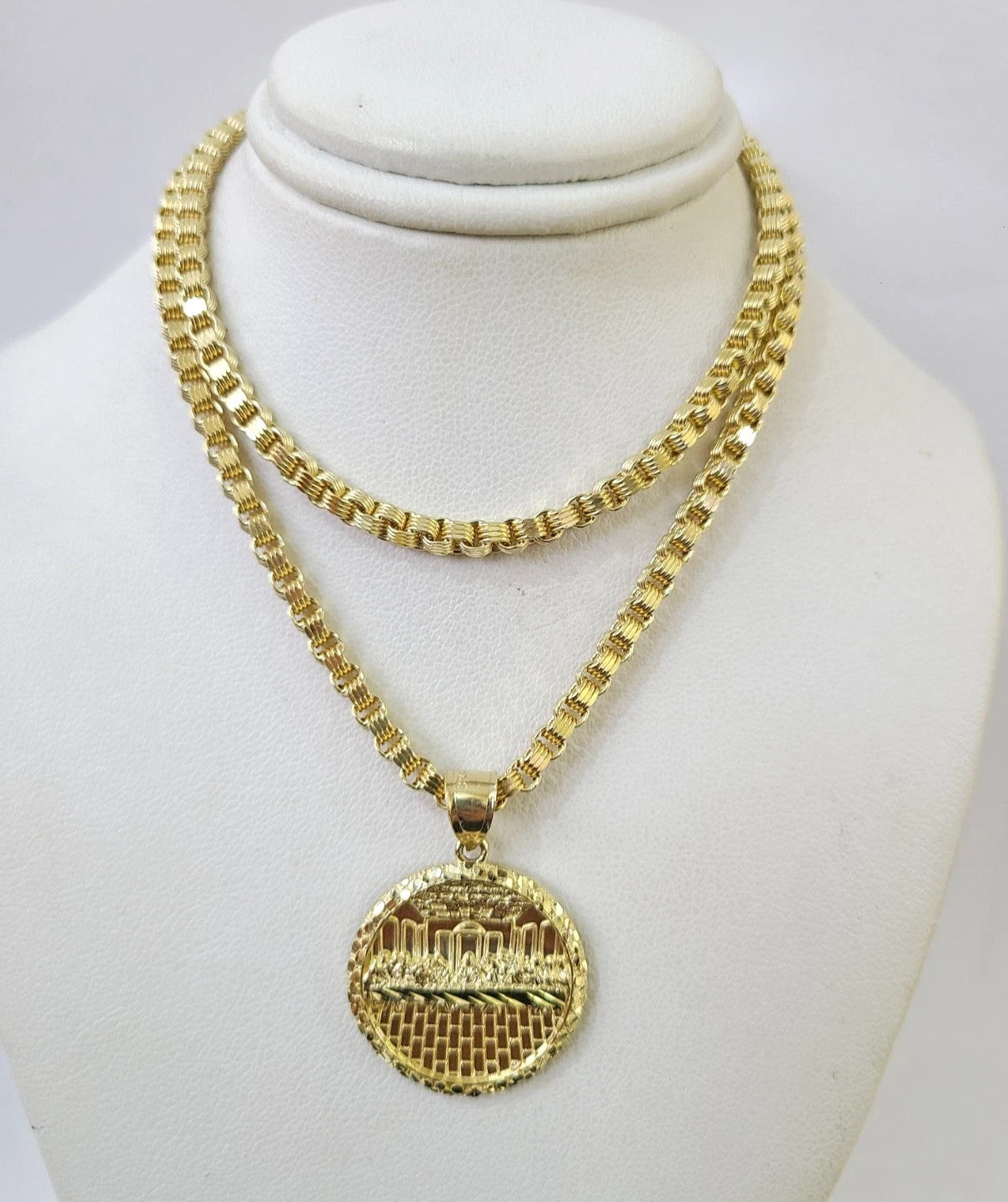 Real 10k Gold Byzantine Necklace Last Supper Nugget Pendant 20-30 inches 3mm SET