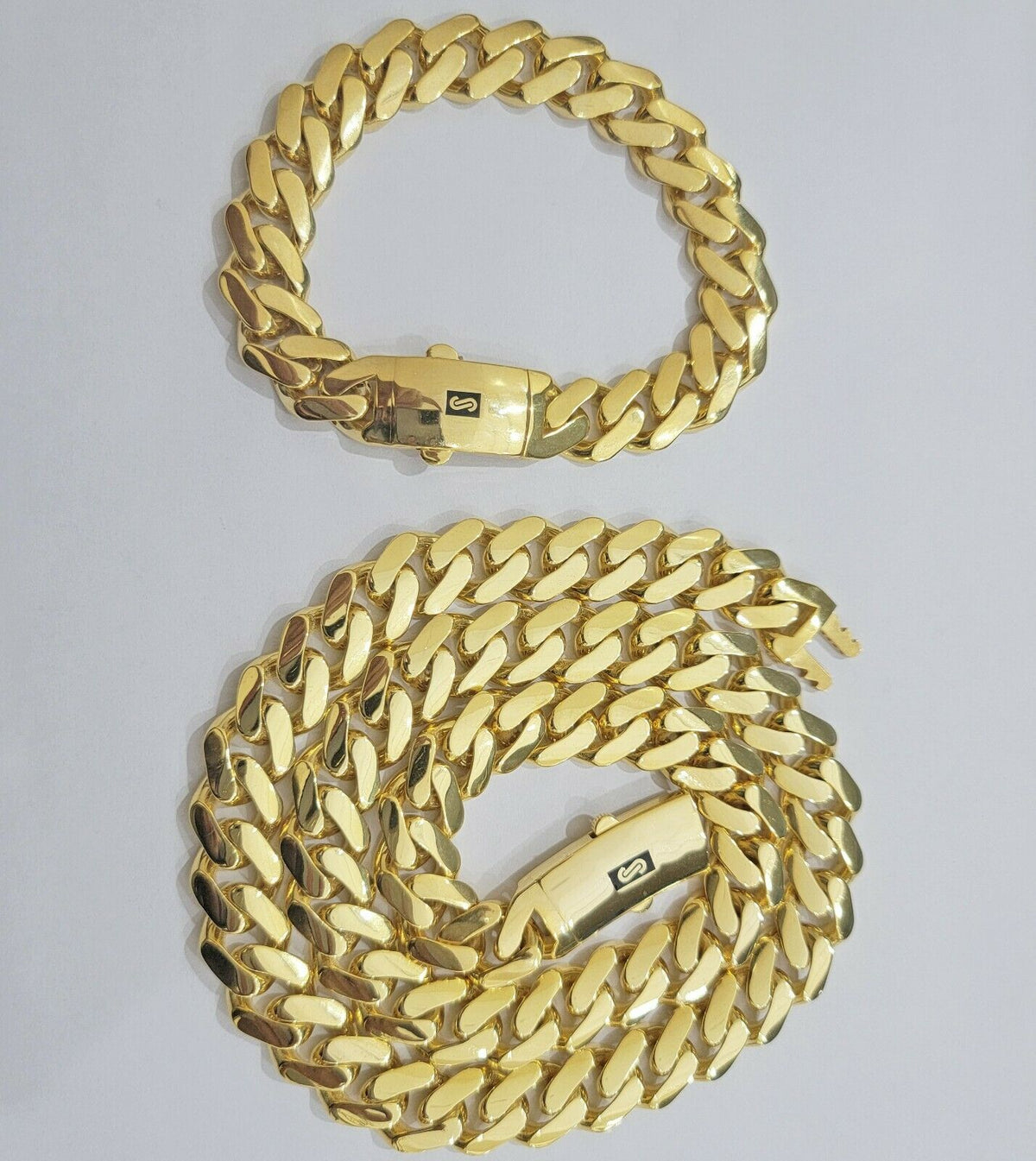 Real 10k Gold Miami Cuban Royal Link Chain 13mm 26" Shiny Plain Necklace Monaco