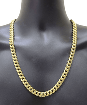 10 k Yellow Gold ( Real , Not plated , Not filled ) Miami Cuban link chain For men's . The Width of the necklace is 9MM and 26 Inches. The Clasp is Box Lock. The necklace is 100% guaranteed 10k yellow gold and have been professionally tested and stamped 10k for purity authenticity. We guarantee the purity of the gold to be 10k, and the chains are NOT GOLD PLATED, NOT FILLED. These necklaces are strong and steady and are not easily broken. The chain is considered durable. If you are not happy with the way it looks or feels, we do offer 30 - Days FREE Return shipping.