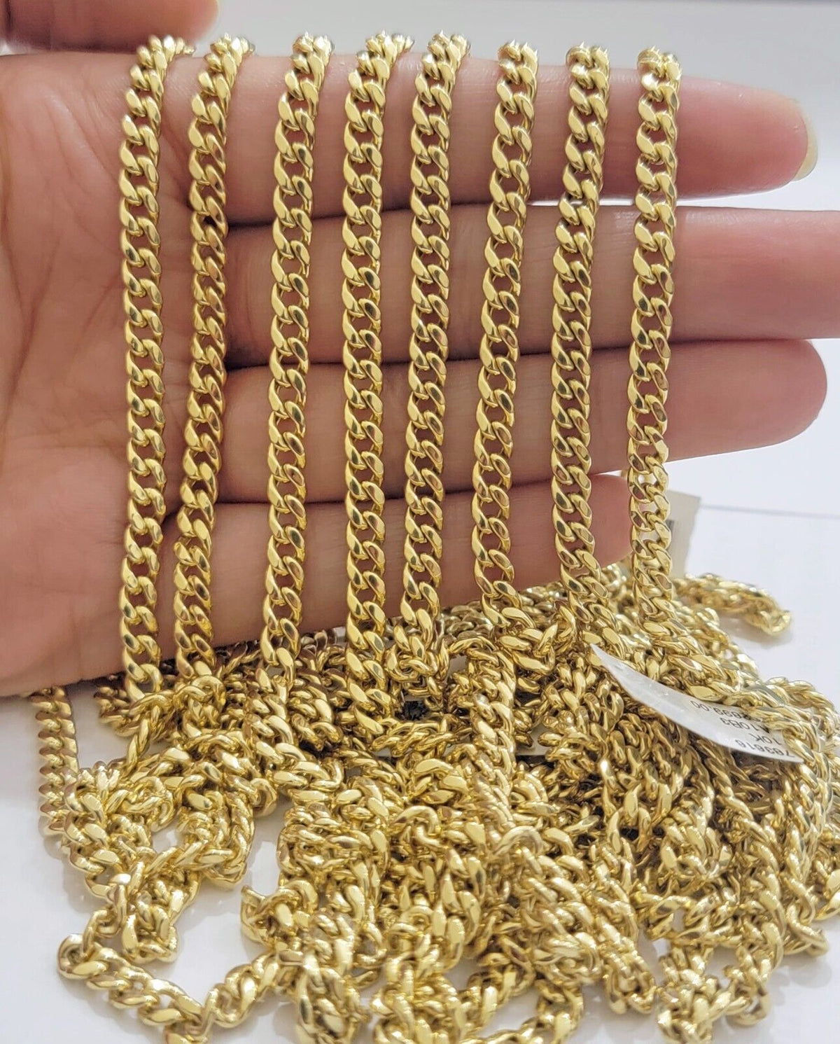 Real 10k Yellow Gold chain Miami Cuban Link 5mm Necklace, 16 Inch 26 Inches In Length 10kt