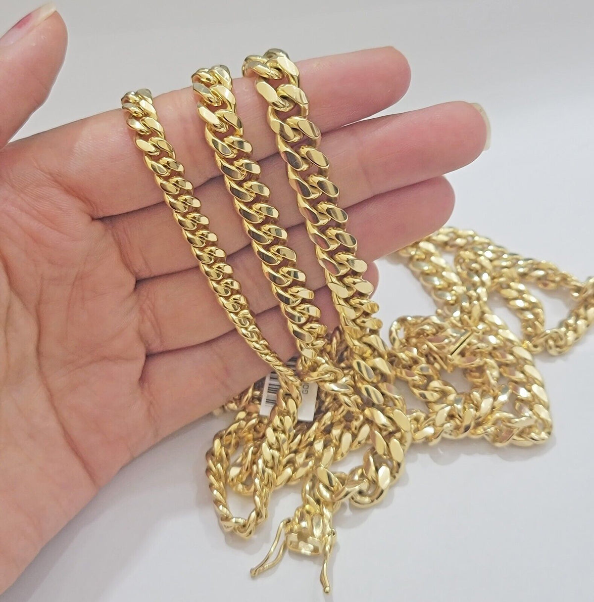 Real 10k Gold Chain Solid Miami Cuban Link Necklace 6mm 7mm 8mm 20"-28" Men's