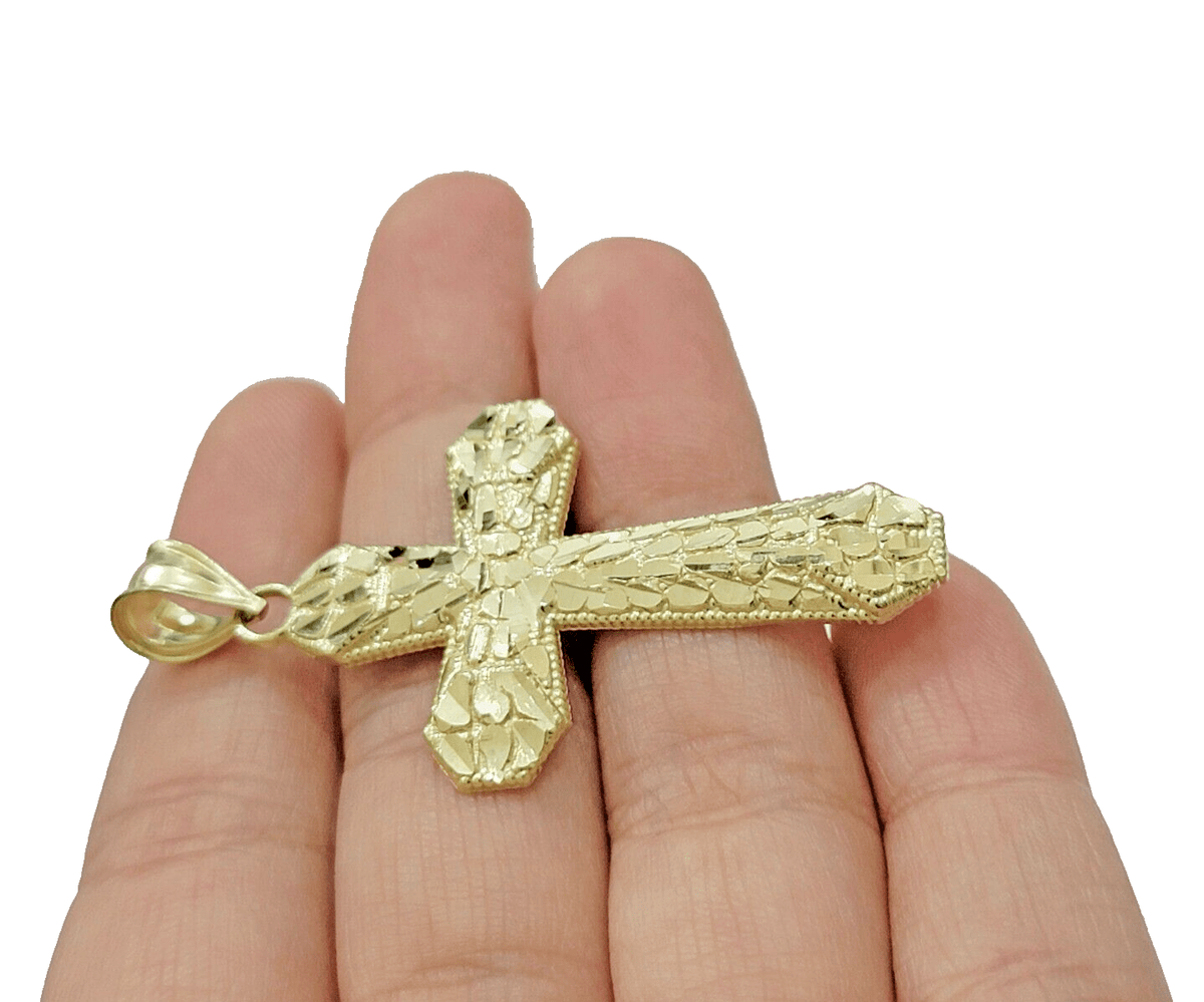 Real 10k Yellow Gold Plain Cross Charm pendant Nugget 2 Inch