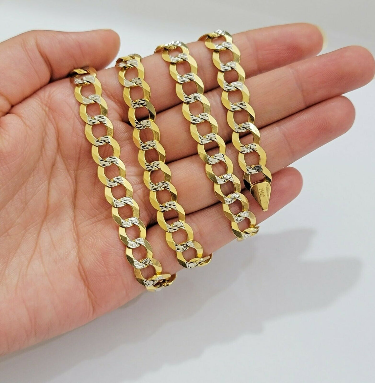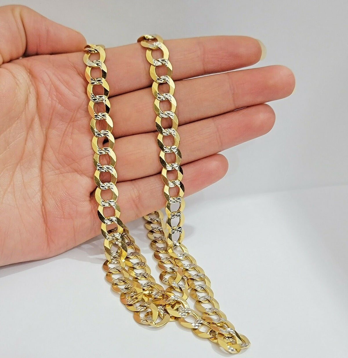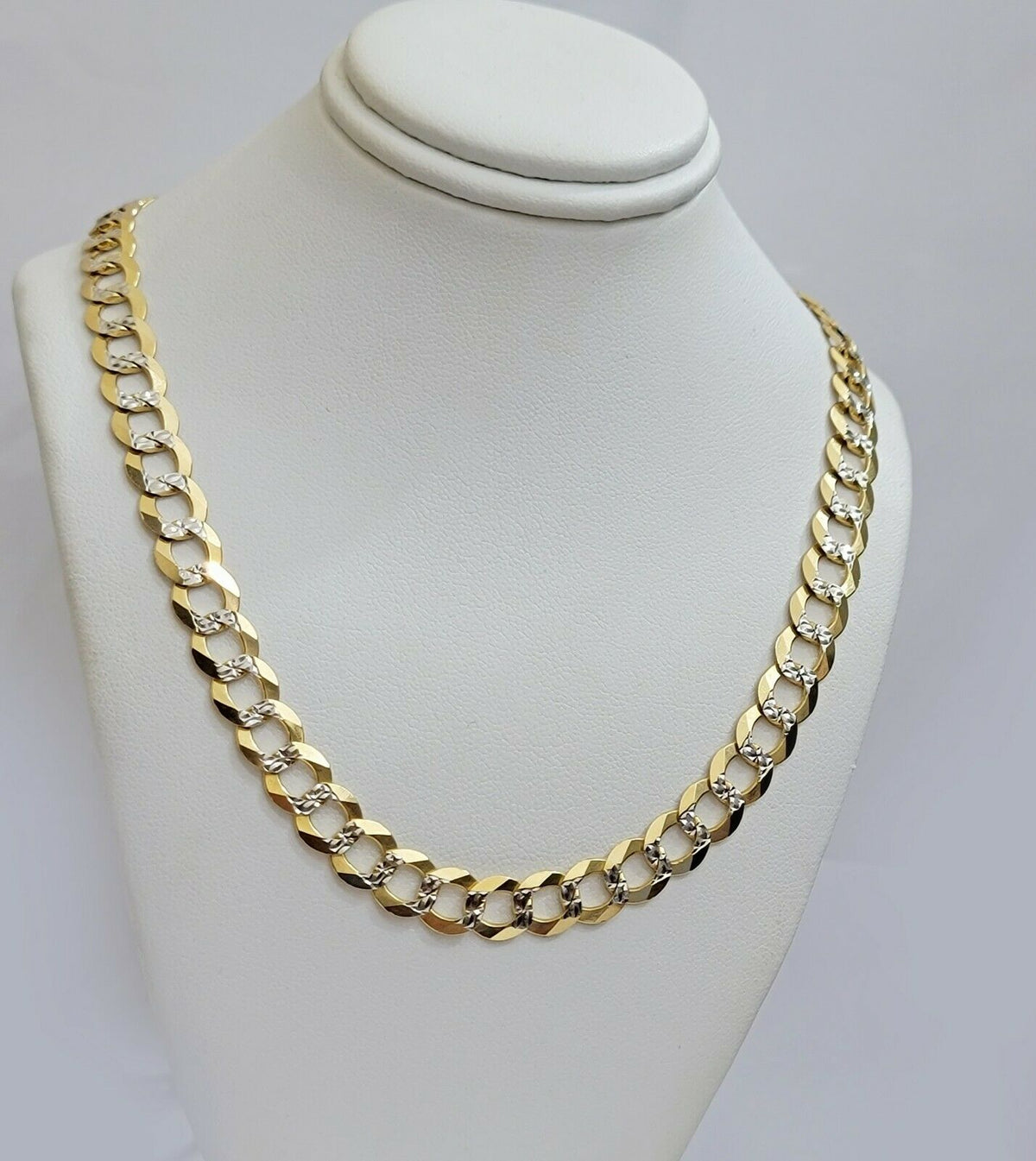 Real 10k Gold Mens Necklace Cuban Curb Link 9mm 24" Inch Diamond Cut SOLID Chain