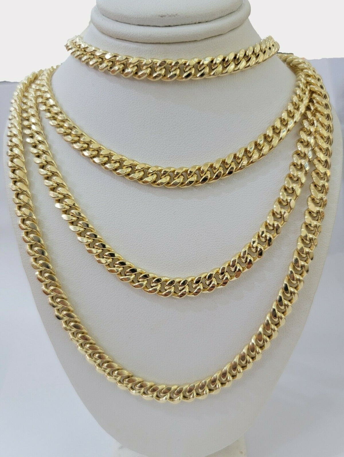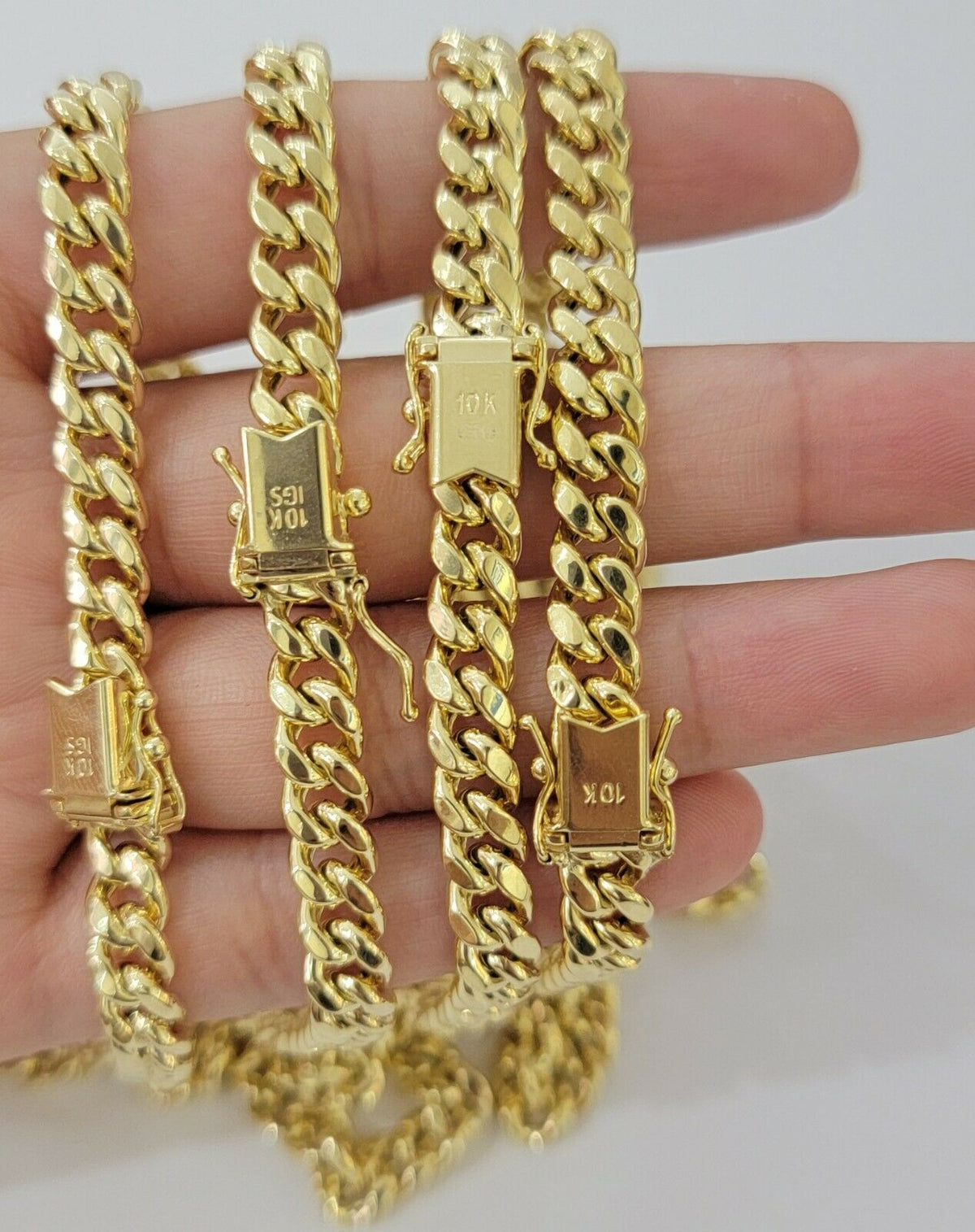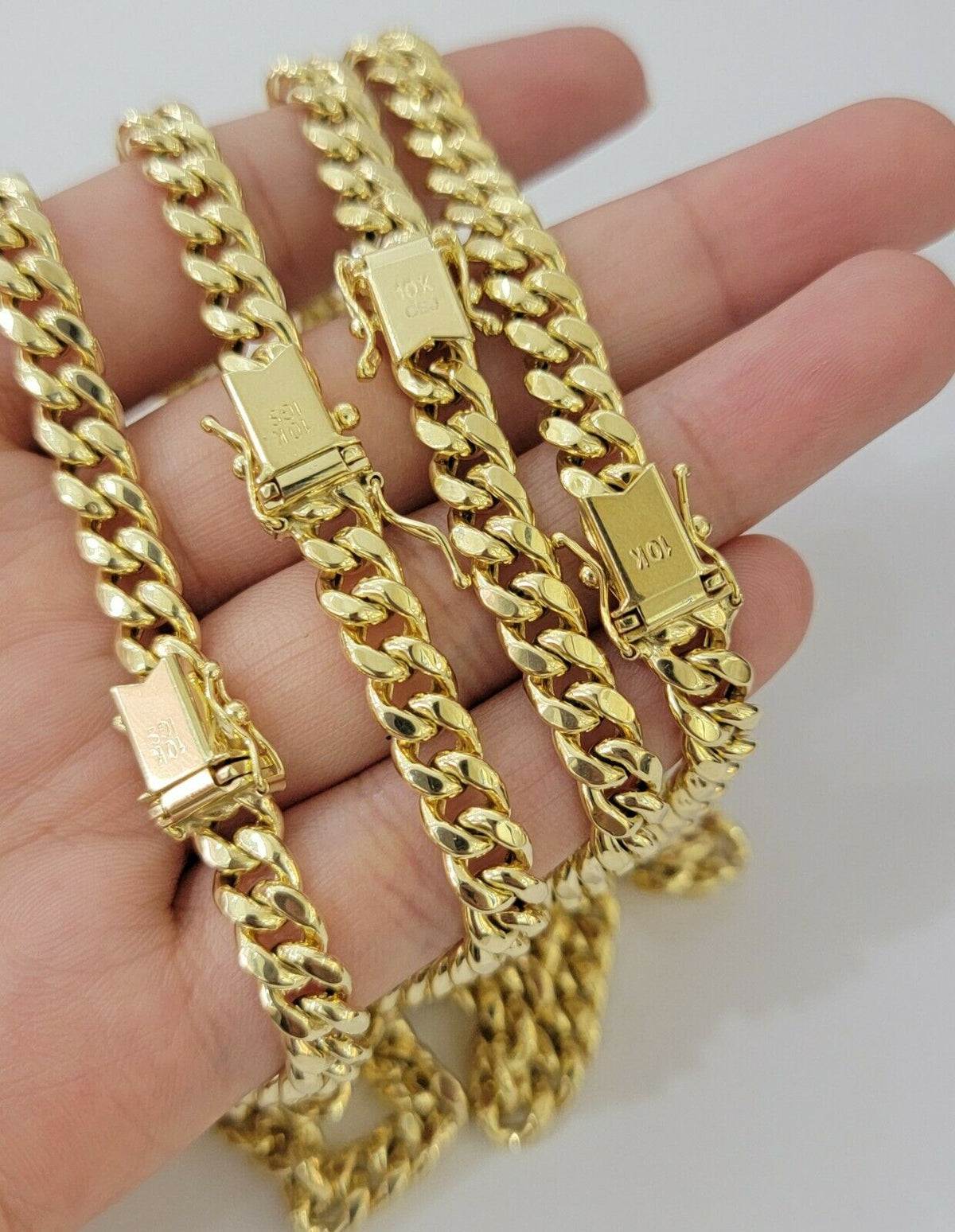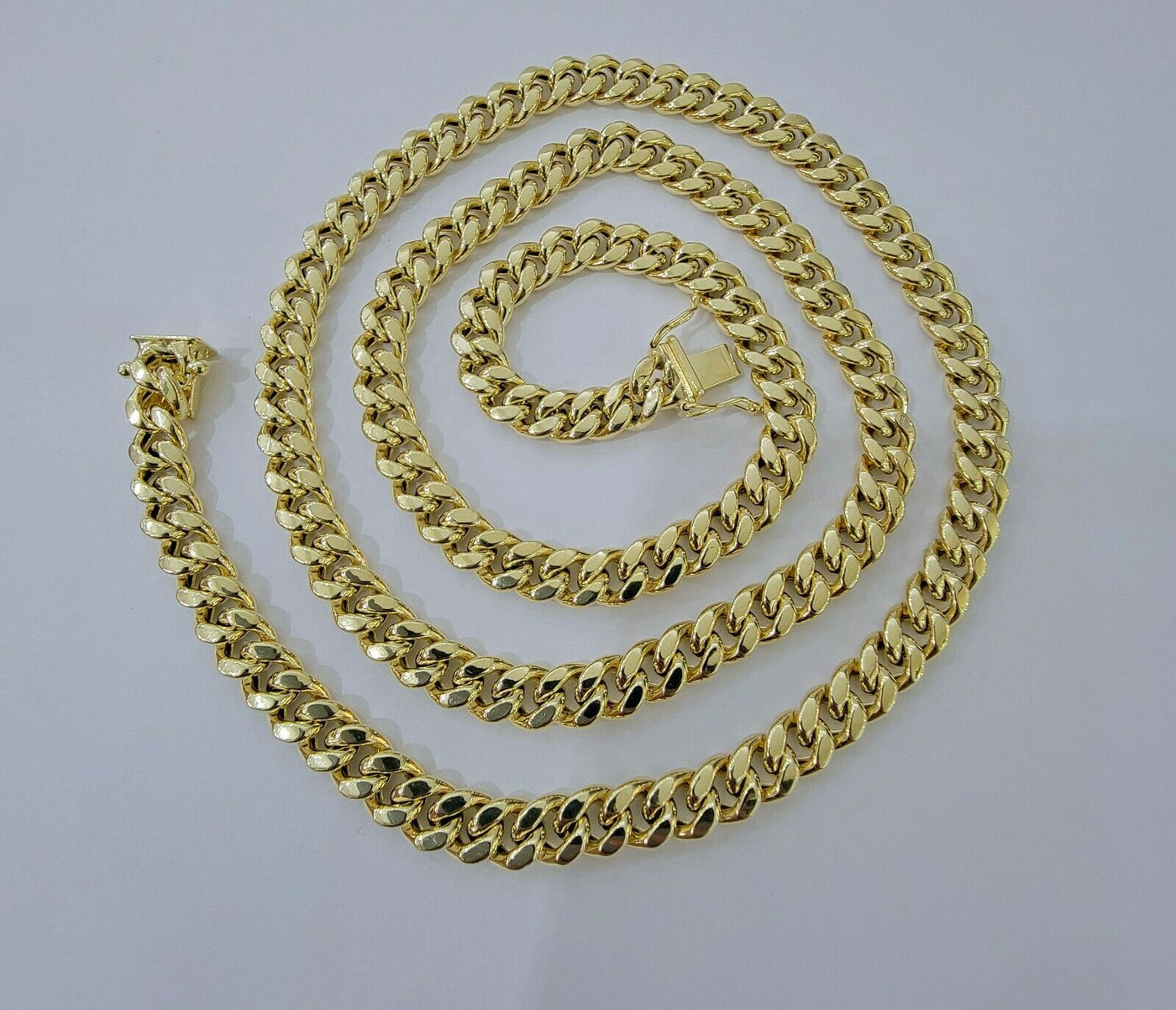 10 k Yellow Gold ( Real , Not plated , Not filled ) Miami Cuban link chain For men's . The Width of the necklace is 7 MM and 24 Inches Long. The Clasp is Box Lock. The chain is considered durable. The necklace is 100% guaranteed 10k yellow gold and have been professionally tested and stamped 10k for purity authenticity. We guarantee the purity of the gold to be 10k, and the chains are NOT GOLD PLATED, NOT FILLED. If you are not happy with the way it looks or feels, we do offer 30 - Days FREE Return shipping.