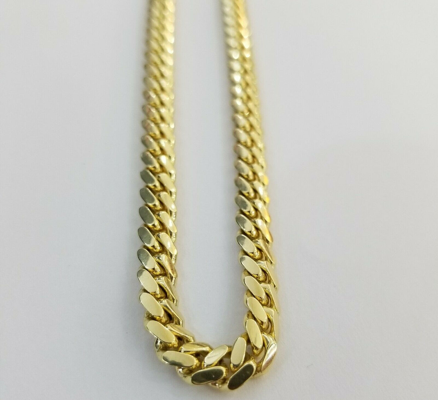 Solid 10KT Yellow Gold ( Real , Not plated , Not filled ) Miami Cuban Cuban Link chain. The Width of the necklace is 6 MM in Length 18-28 Inches. The Clasp is Box Lock. The chain is considered durable because is is Heavy Solid with approximately 43-70 grams . The necklace is 100% guaranteed 10k yellow gold and have been professionally tested and stamped 10k for purity authenticity. The chain feels light weight because of its make being hollow but We guarantee the purity of the gold to be 10k, and the chains are NOT GOLD PLATED, NOT FILLED. If you are not happy with the way it looks or feels, we do offer