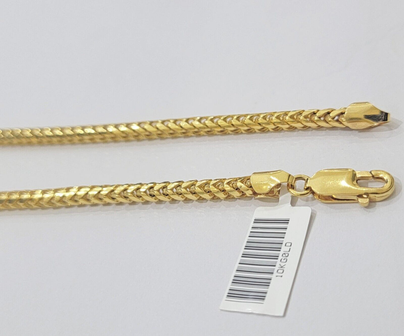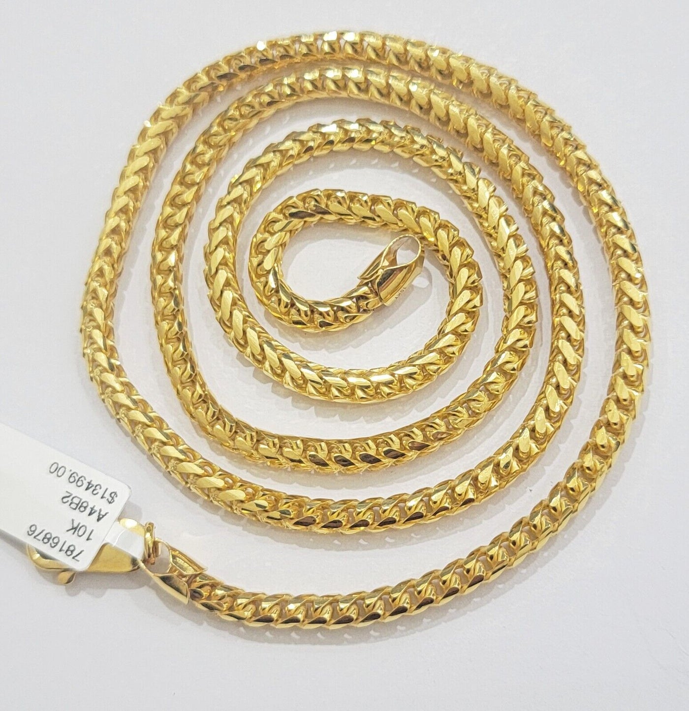 Real 10k Gold Necklace Franco Chain 4mm 24Inch Diamond Cut 10k Yellow Gold SOLID