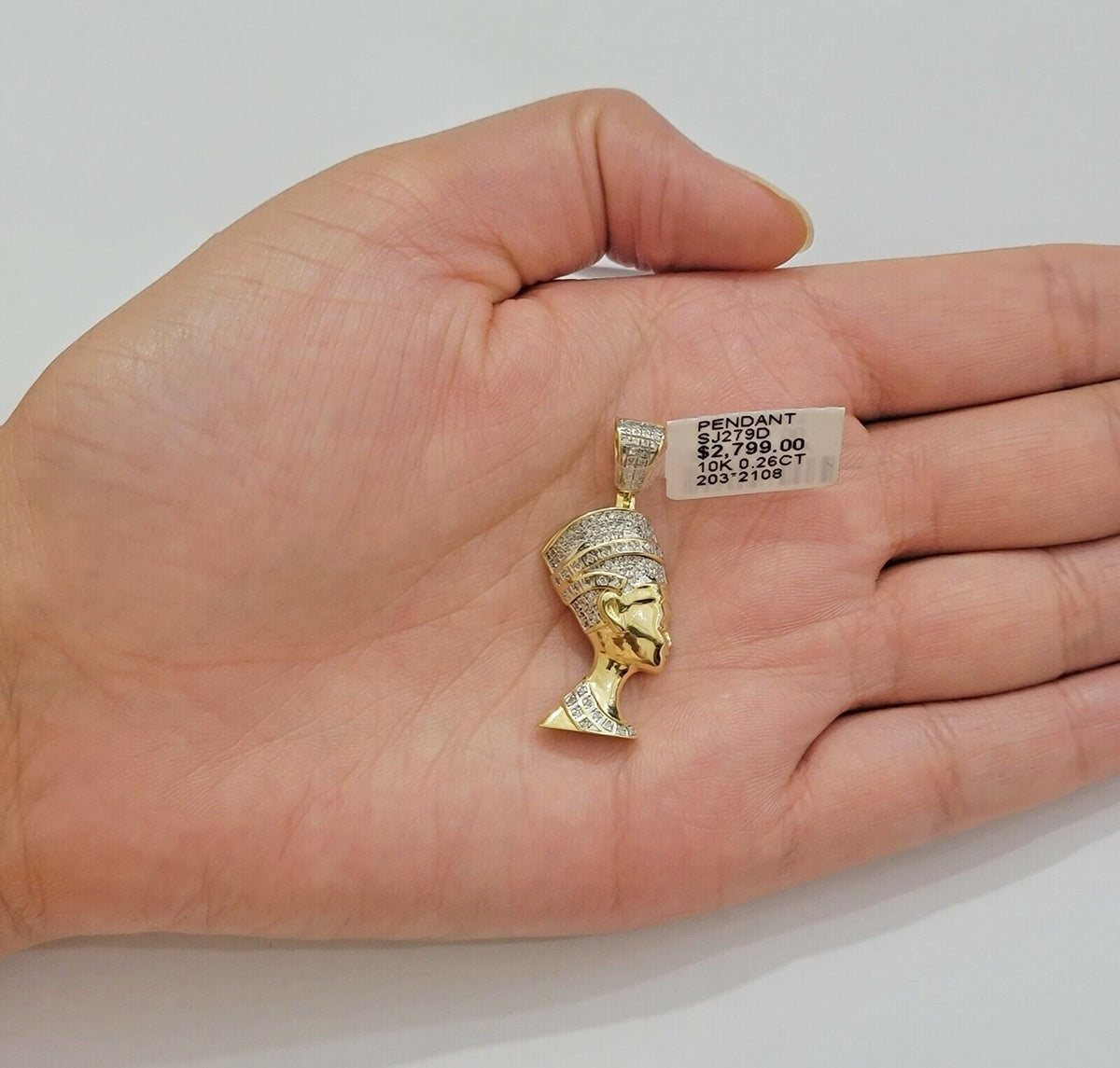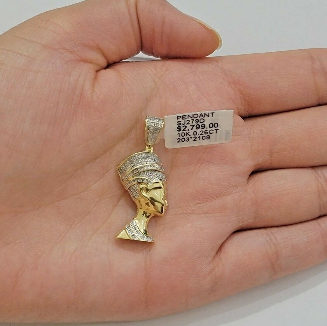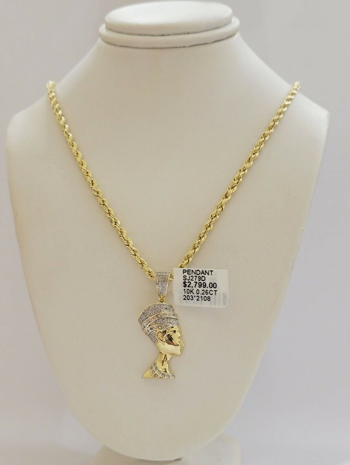 REAL 10k Gold Rope Chain Pendant Pharaoh Head Charm SET 3mm Necklace 18"- 28"