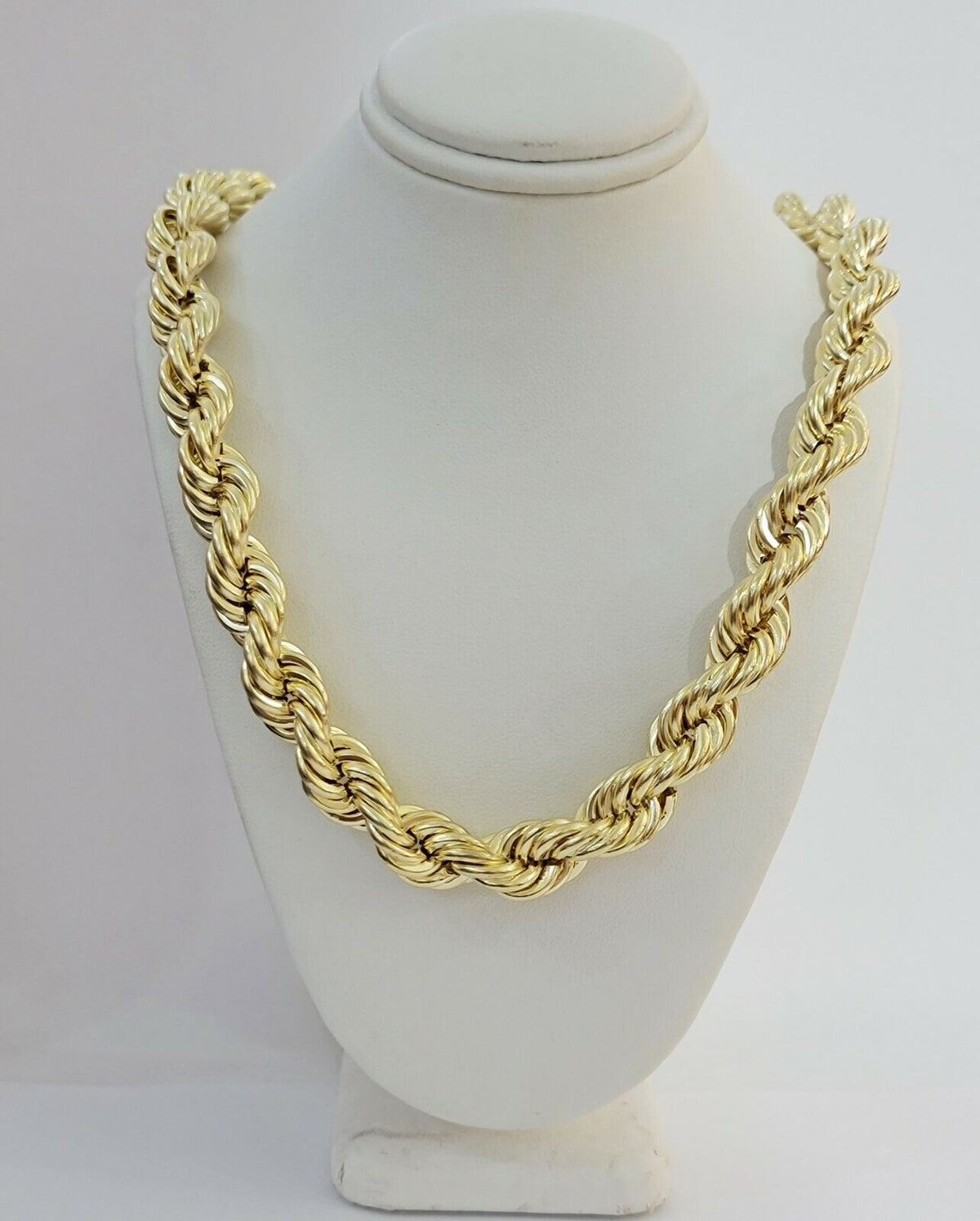REAL 10k Yellow Gold Men's Necklace 12mm Rope Chain 24 Inch