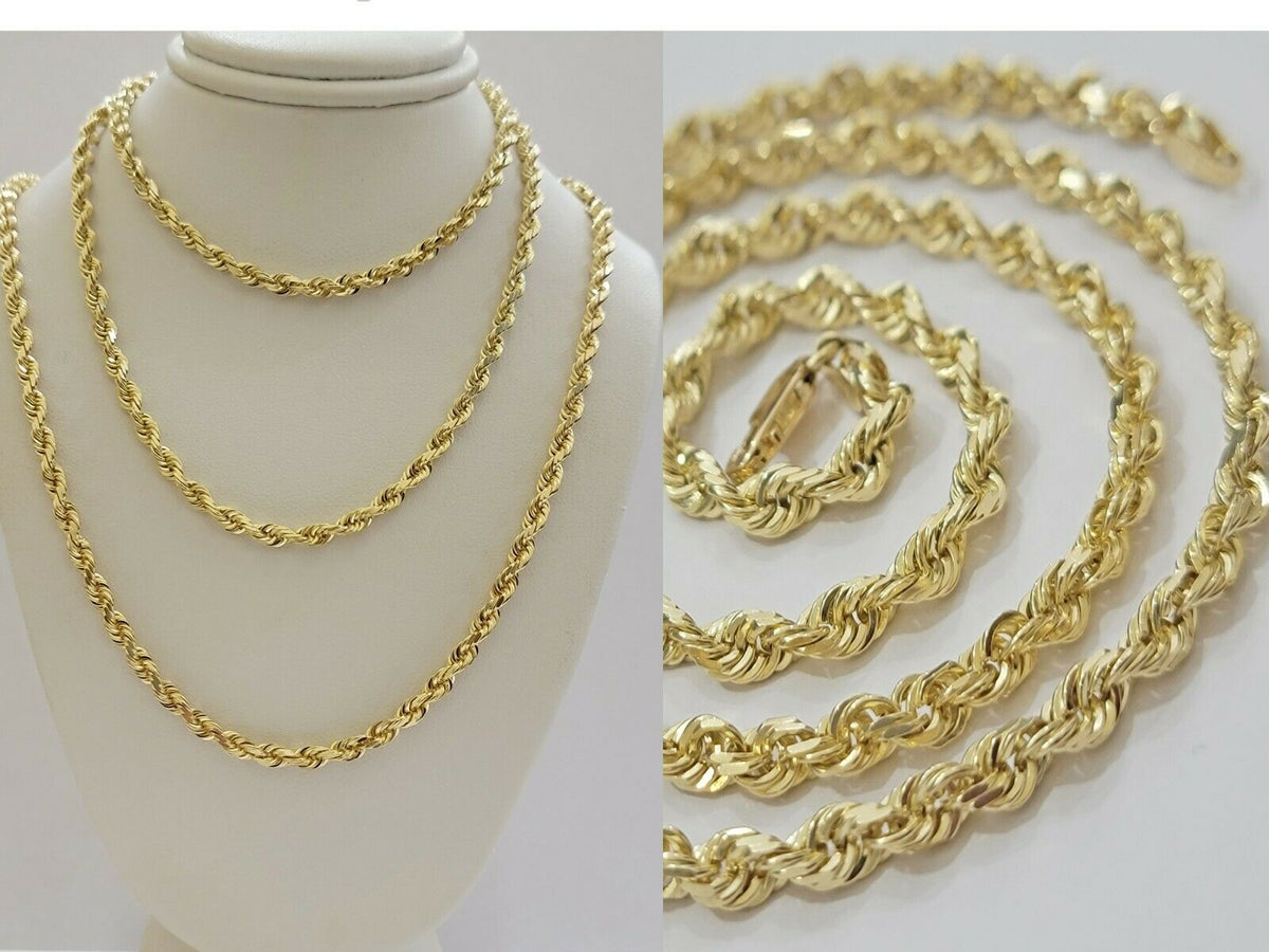 REAL 10 k Solid Gold Rope chain. It is not plated, or filled or overlaid . It is 100% Genuine 10 k Gold. The Width of the necklace is 4 MM and Various Length stating From 18 Inches - 28 Inches. The Clasp is lobster. The chain is considered durable. If you are not happy with the way it looks or feels, we do offer 30 - Days FREE Return shipping. Contact us for more information.