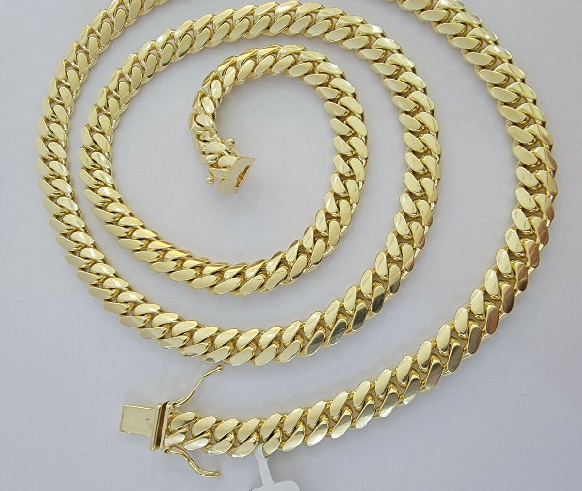 Solid 10k Gold Chain Miami Cuban Link Necklace 7mm 22"10kt Yellow Gold Mens REAL