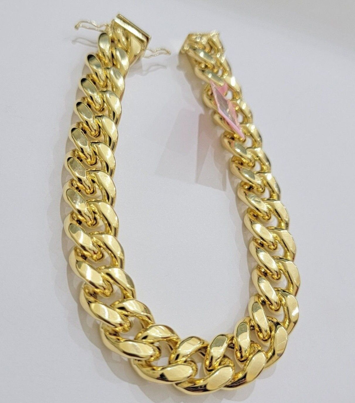 13mm 14k Gold Bracelet Miami Cuban Link 7.5"- 10 Inch Mens Real 14kt Yellow Gold