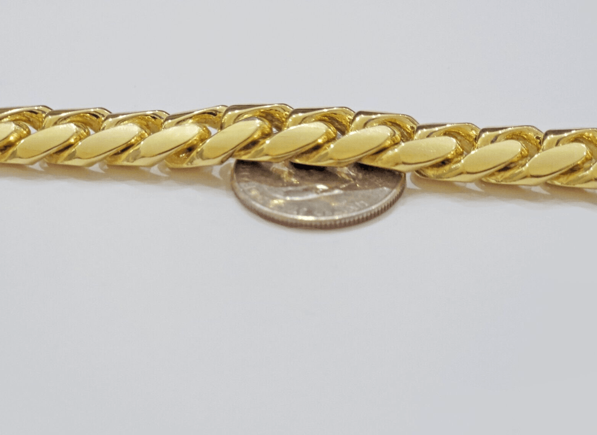 SOLID 14 K Yellow Gold ( Real , Not plated , Not filled ) Miami Cuban-Link Bracelet For Men's. The Width of the Bracelet is 13 mm (approx.) and 8 Inch Long . The Clasp is Box Lock which is strong and safe lock for the bracelet. The bracelet is beautiful designed with Cuban-Link style. If you are not happy with the way it looks or feels, we do offer free return. Buyers need to make sure that the return item has to be in its original sent/ brand new condition with original tag attached.