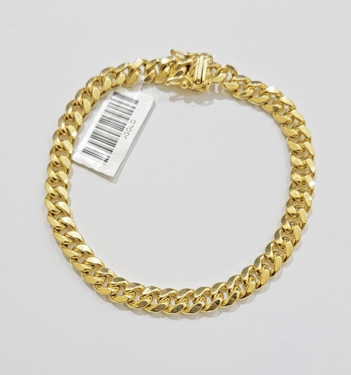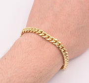 14k Gold Bracelet Miami Cuban Link 7mm 9" Inch Real 14 KT Yellow Gold Men Women