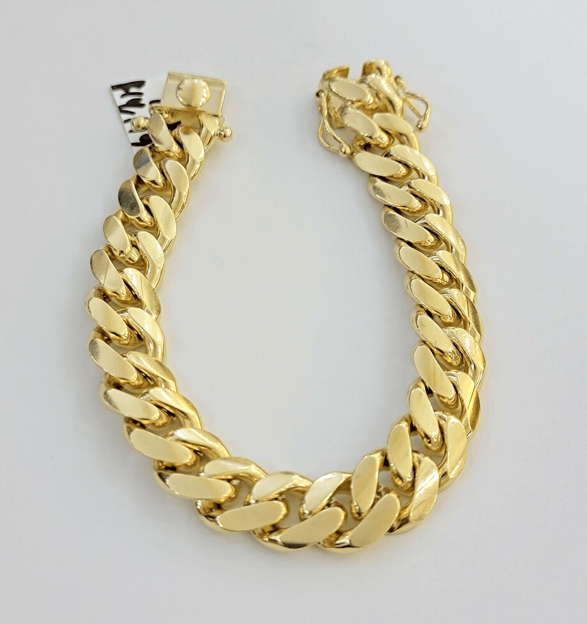 Solid 14k Gold Men's Bracelet Miami Cuban Link 9" 13mm Box Clasp SOLID LINKS REAL