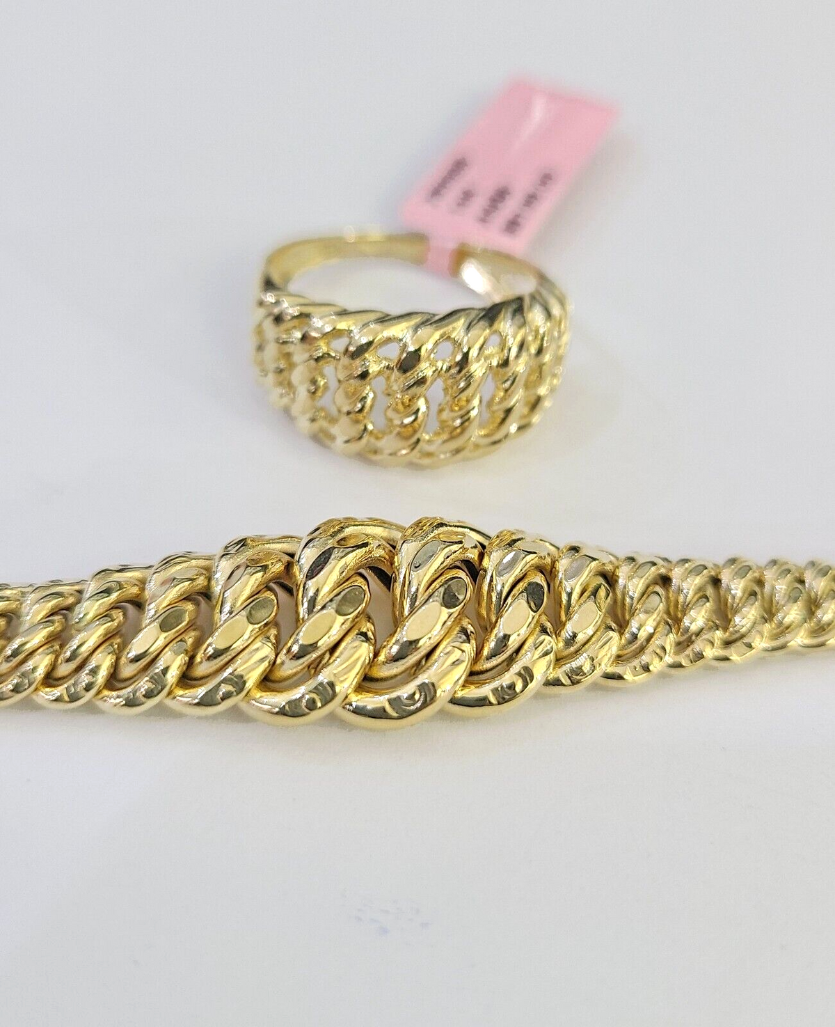 14K Gold Princesa Ring Bracelet 7.5" 7mm Real Yellow SET Flat Byzantine 14Kt All Sizes