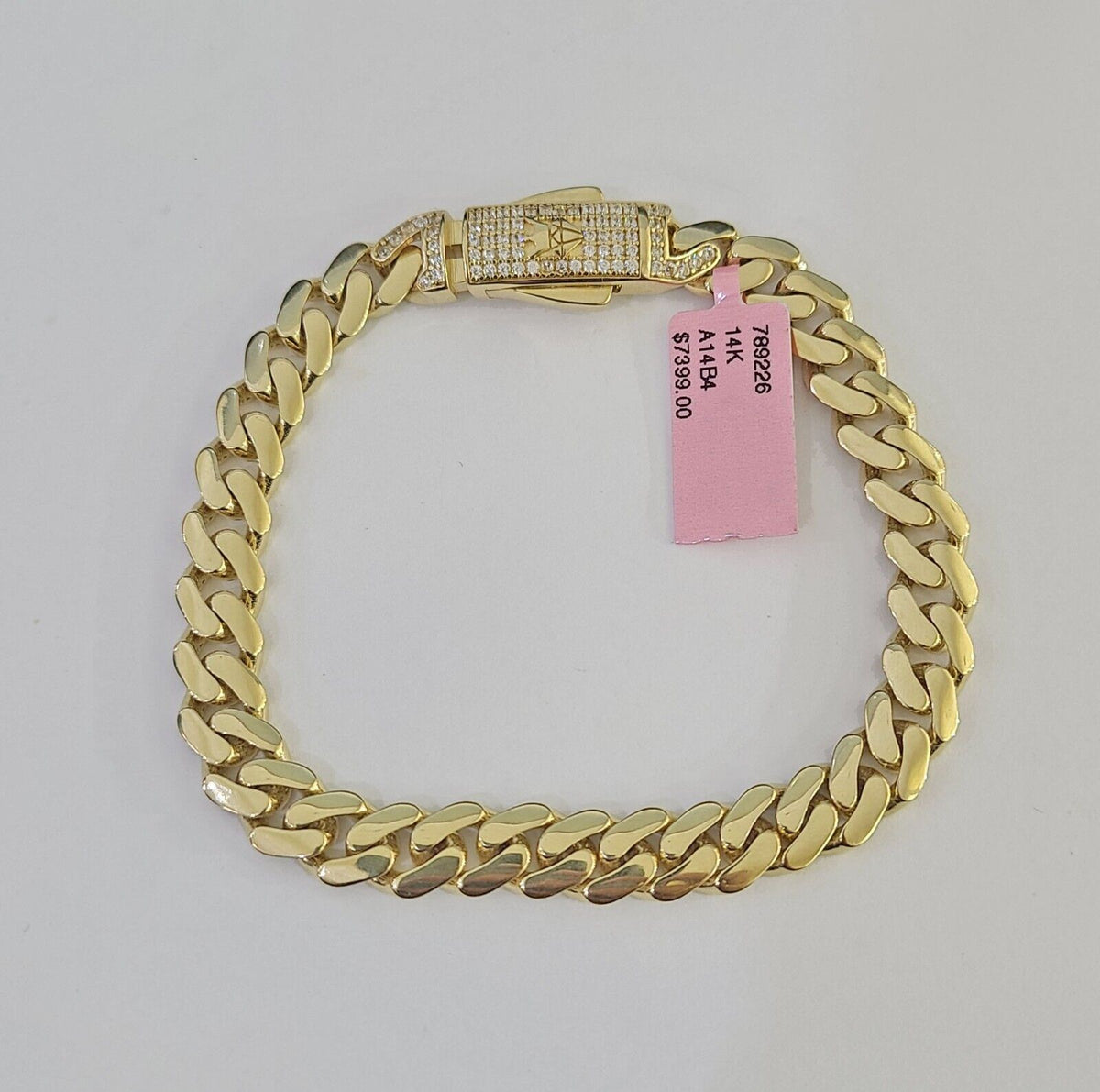 14K Royal Monaco Cuban Bracelet Yellow Gold 8mm 8 inches Box Lock