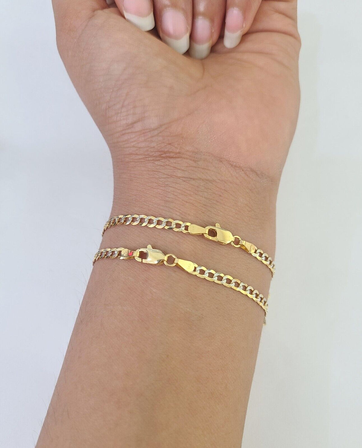 14K Solid Cuban Curb Link Bracelet Diamond Cut 3mm 7" Inch REAL Yellow Gold