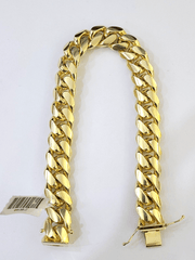 Is Presenting You with This Absolutely Stunning Real 14k Yellow Gold Miami Cuban Link Bracelet 9.5" Inch (approx) 13mm��bracelet length.��These Beautiful hand Bracelets will not tarnish, discolor, or fade because they are Pure 14K Gold.��We also have them in various another sizes. Please feel free to contact us if you have any queries regarding the item.