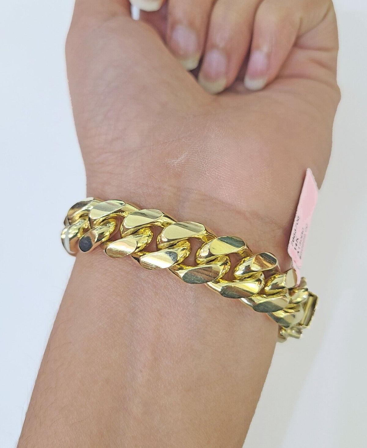 Is Presenting You with This Absolutely Stunning Real 14k Yellow Gold Cuban Link Bracelet 8" Inch (approx.) 13mm��bracelet.��These Beautiful hand Bracelets will not tarnish, discolor, or fade because they are Pure 14K Gold.��We also have them in various another sizes. Please feel free to contact us if you have any queries regarding the item.