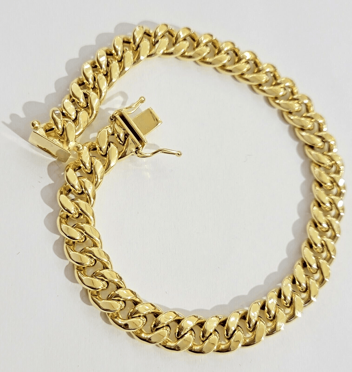 14k Yellow Gold Miami Cuban Link Bracelet 9 inch 8mm Real 14kt Box Lock For Men