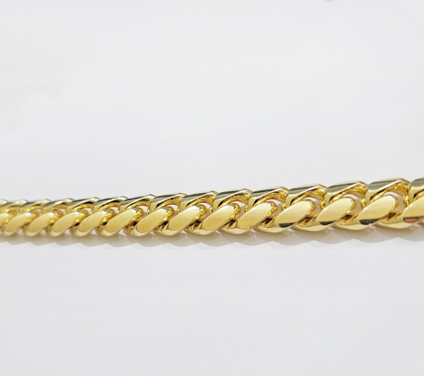 SOLID 14 K Yellow Gold ( Real , Not plated , Not filled ) Miami Cuban-Link Bracelet For Men's. The Width of the Bracelet is 9mm (approx.) and 7.5 Inch Long . The Clasp is Box Lock which is strong and safe lock for the bracelet. The bracelet is beautiful designed with Cuban-Link style. If you are not happy with the way it looks or feels, we do offer free return. Buyers need to make sure that the return item has to be in its original sent/ brand new condition with original tag attached. Violation in return policy might result in negative consequence.