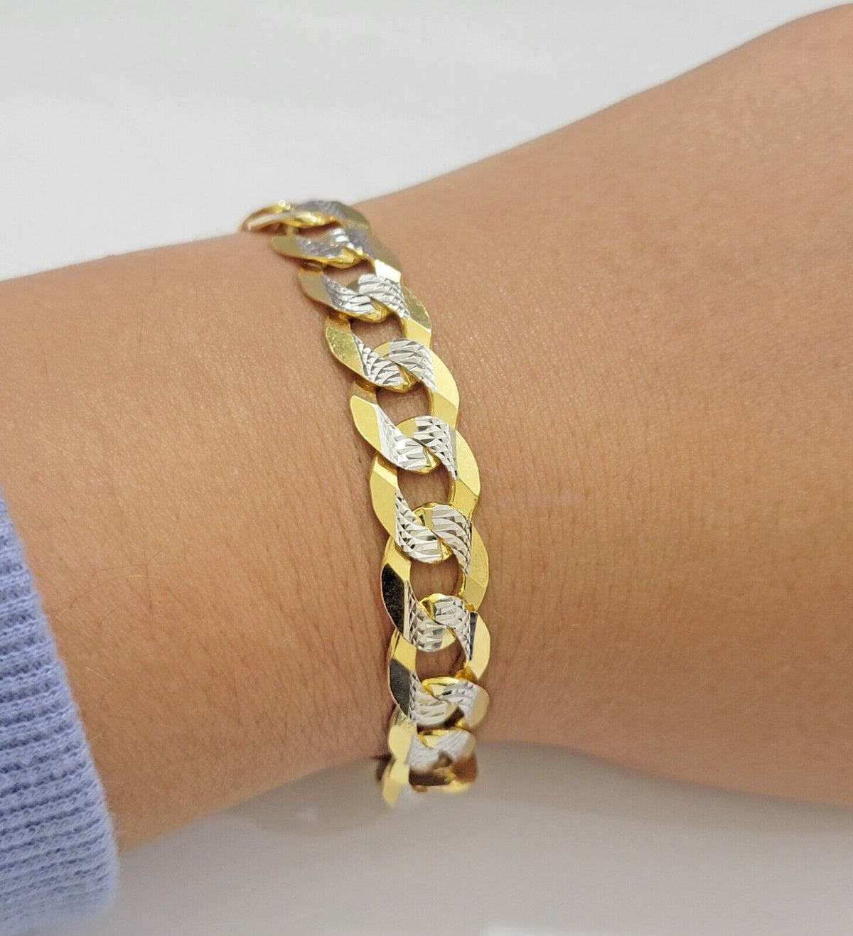 Solid 14k Gold Cuban Curb link Bracelet 9" 11mm 14kt Yellow Gold Diamond Cut