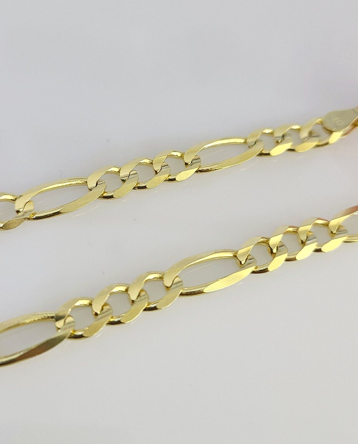 Real 14k Yellow Gold Figaro link Bracelet 5mm 7.5" Inch Mens Womens Genuine