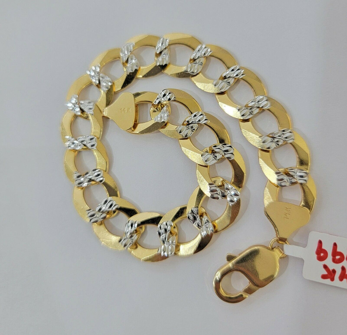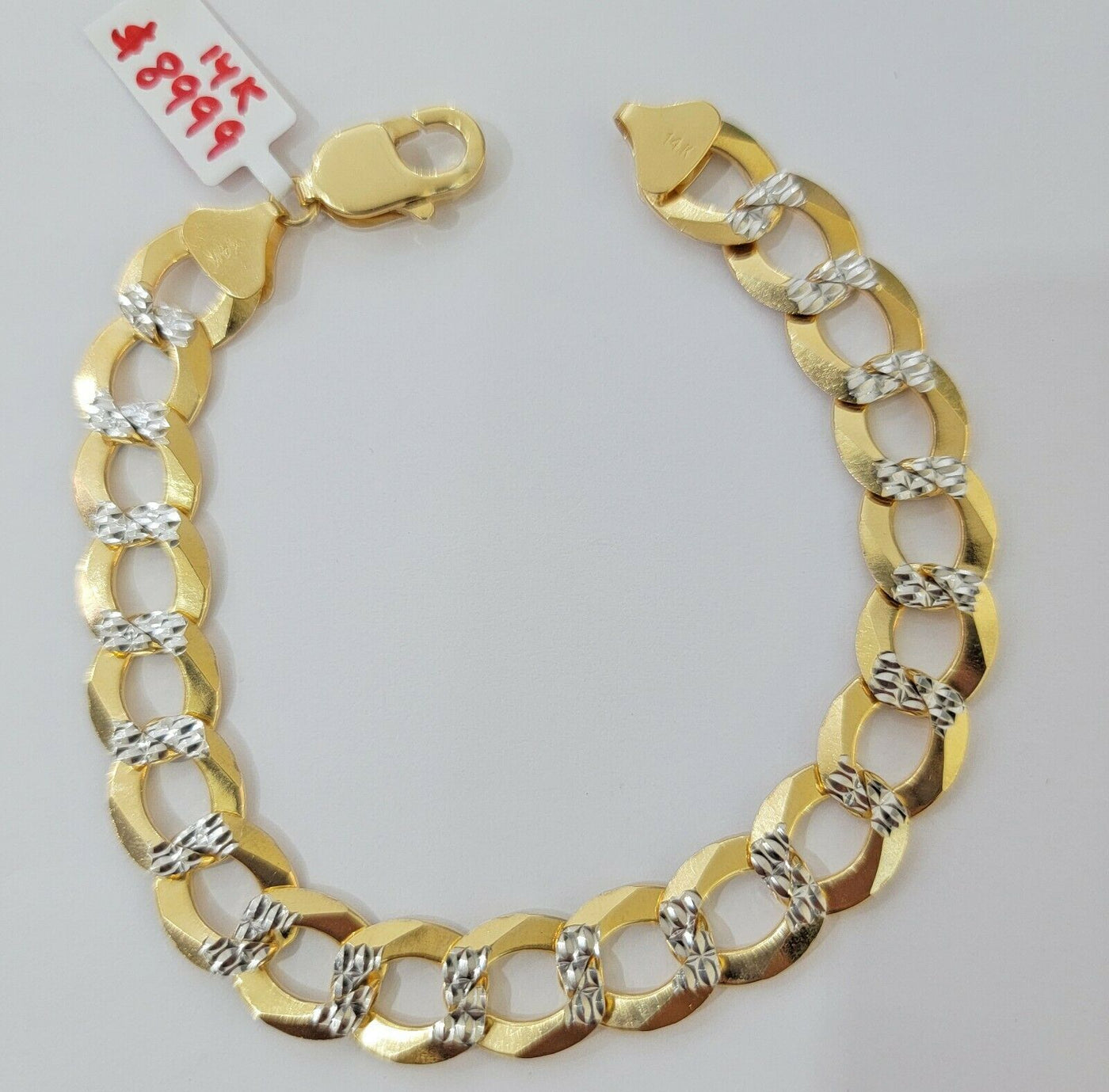 Solid 14k Gold Cuban Curb link Bracelet 9" 13.5mm 14kt Yellow Gold Diamond Cut
