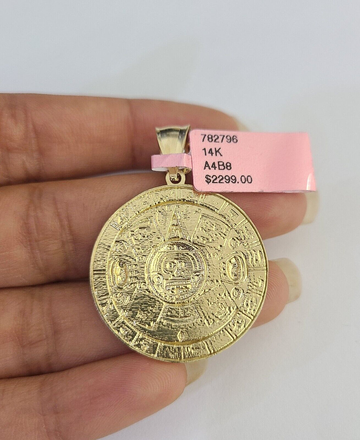 Mayan Calendar Charm Pendant.These Beautiful chains and Pendant will not tarnish, discolor, or fade because they are Pure 14K Gold. We also have them in various another length and sizes. 20"-A11B2 A4B8