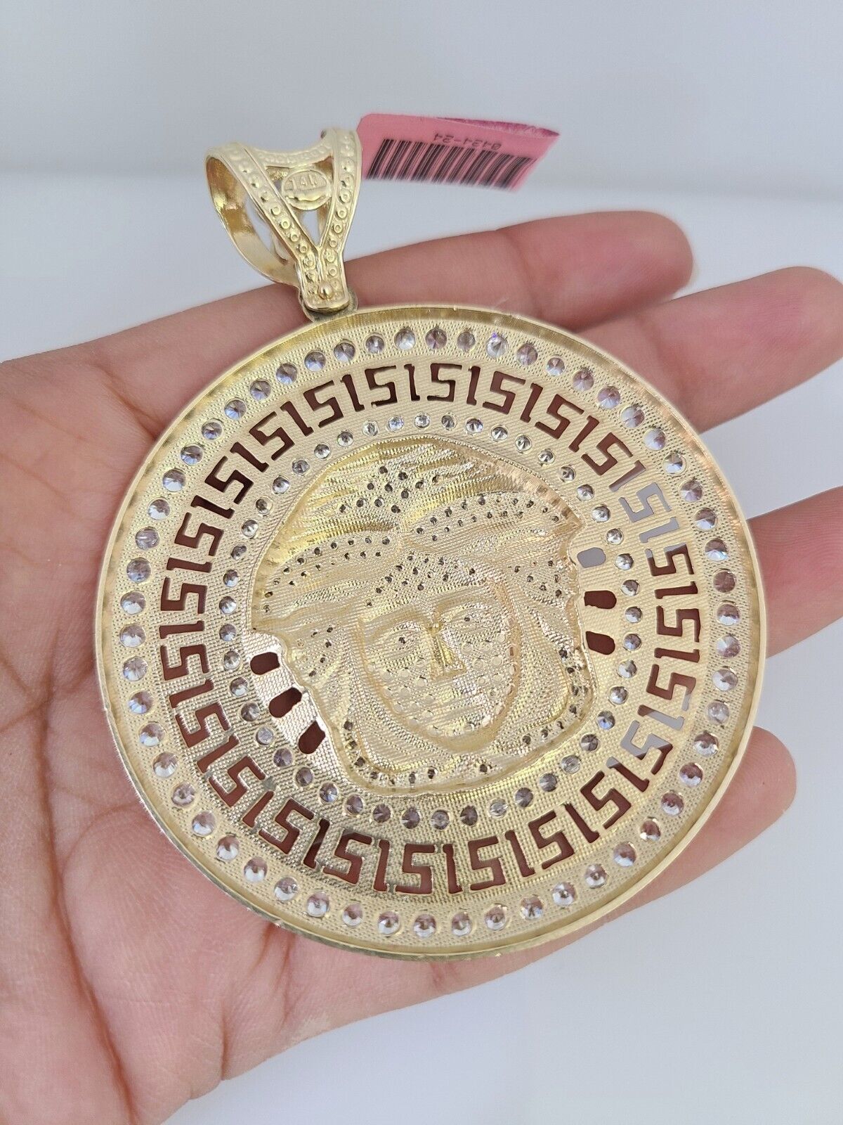 We present You with This Absolutely Stunning Real 14k Yellow Gold SOLID Cuban Curb link Chain with Medusa Head Charm. It has a detailed cut with a very good finish. These Beautiful Chains will not tarnish, discolor, or fade because they are Pure 14K Gold. Please feel free to contact us if you have any queries regarding the item. 22"-A46B4 A25B6