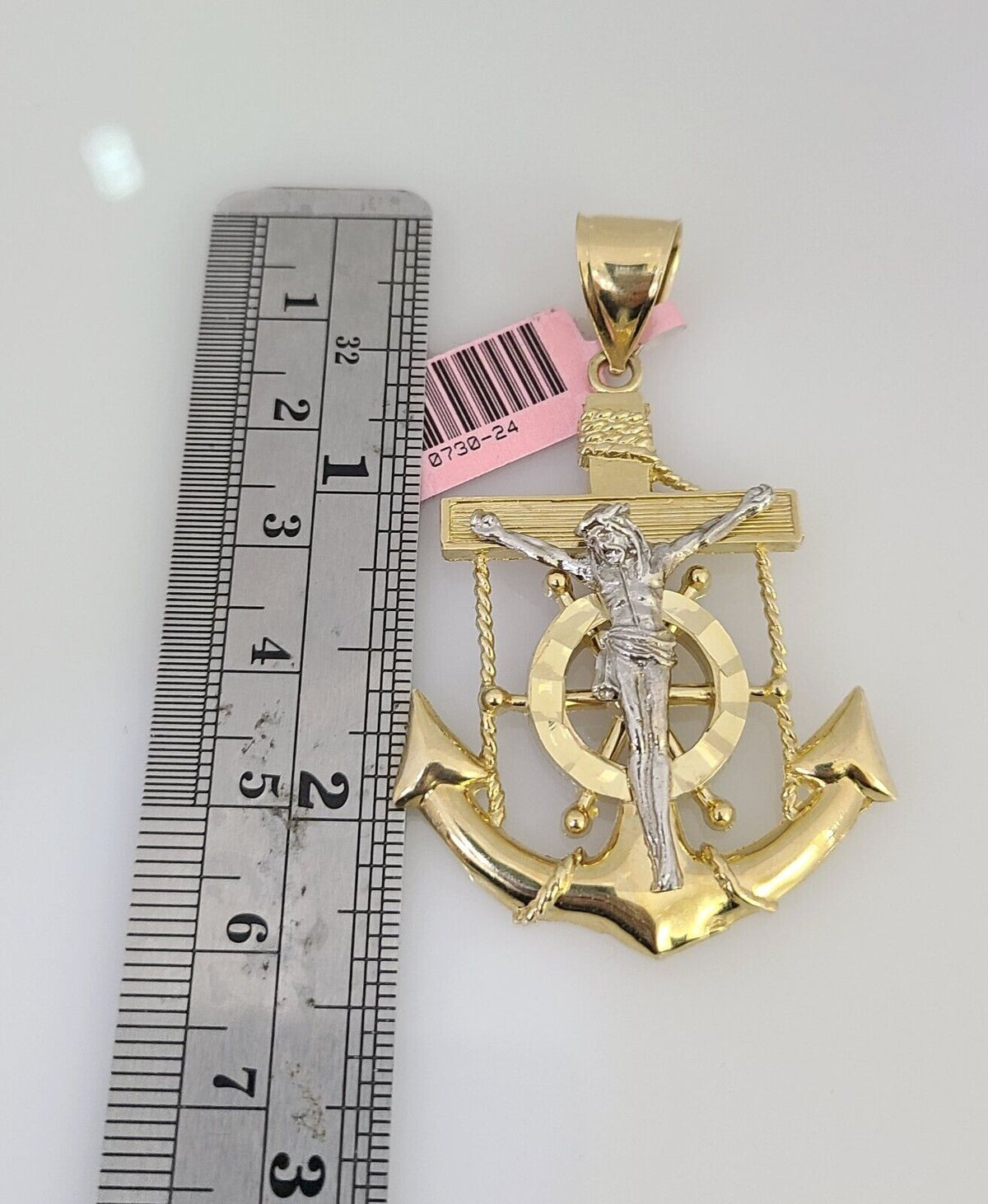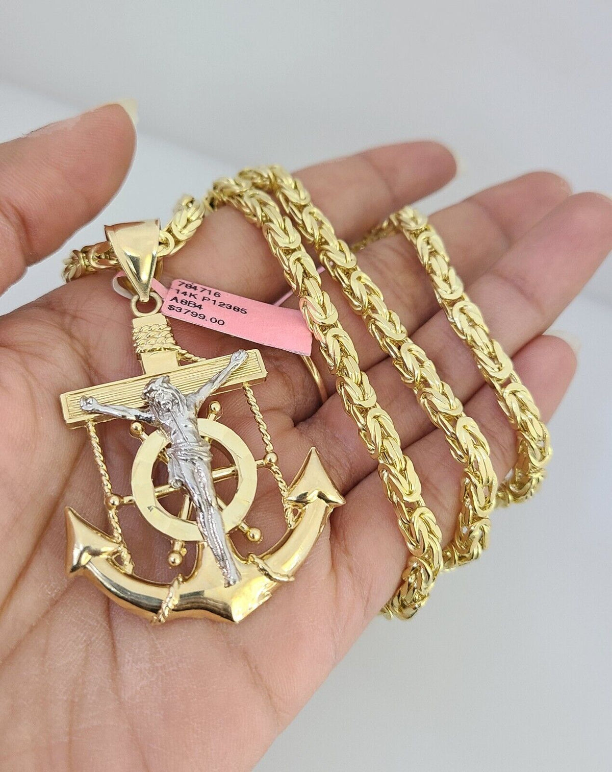 Real 14k Yellow Gold Turkish Byzantine Necklace 4mm, 24 Inches and Jesus Anchor Charm with lobster Lock . These Beautiful Necklace will not tarnish, discolor, or fade because they are Pure 14K Gold. A26B8 AG A8B4 P12385