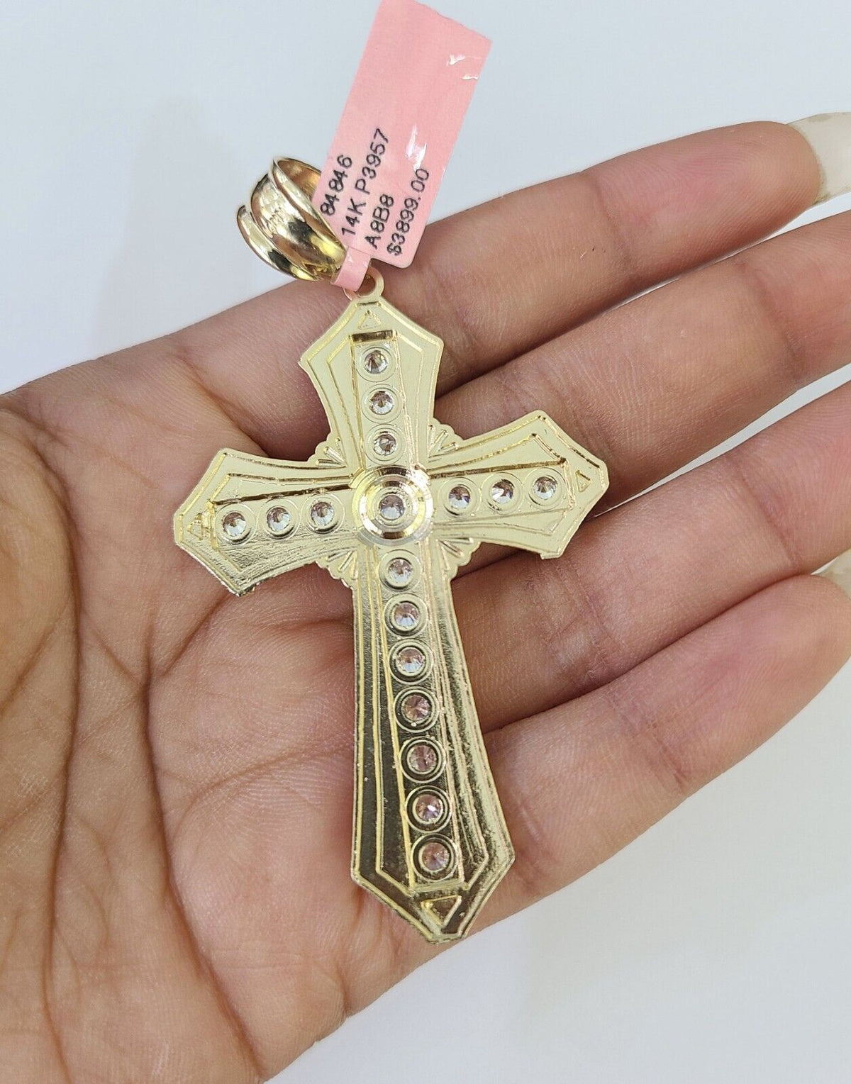 We present You with This Absolutely Stunning Solid Real 14k Yellow Gold Cuban Curb Link Chain with Jesus Cross Pendant. It has a detailed cut with a very good finish. These Beautiful Chains will not tarnish, discolor, or fade because they are Pure 14K Gold. Please feel free to contact us if you have any queries regarding the item. A35B5 A8B8