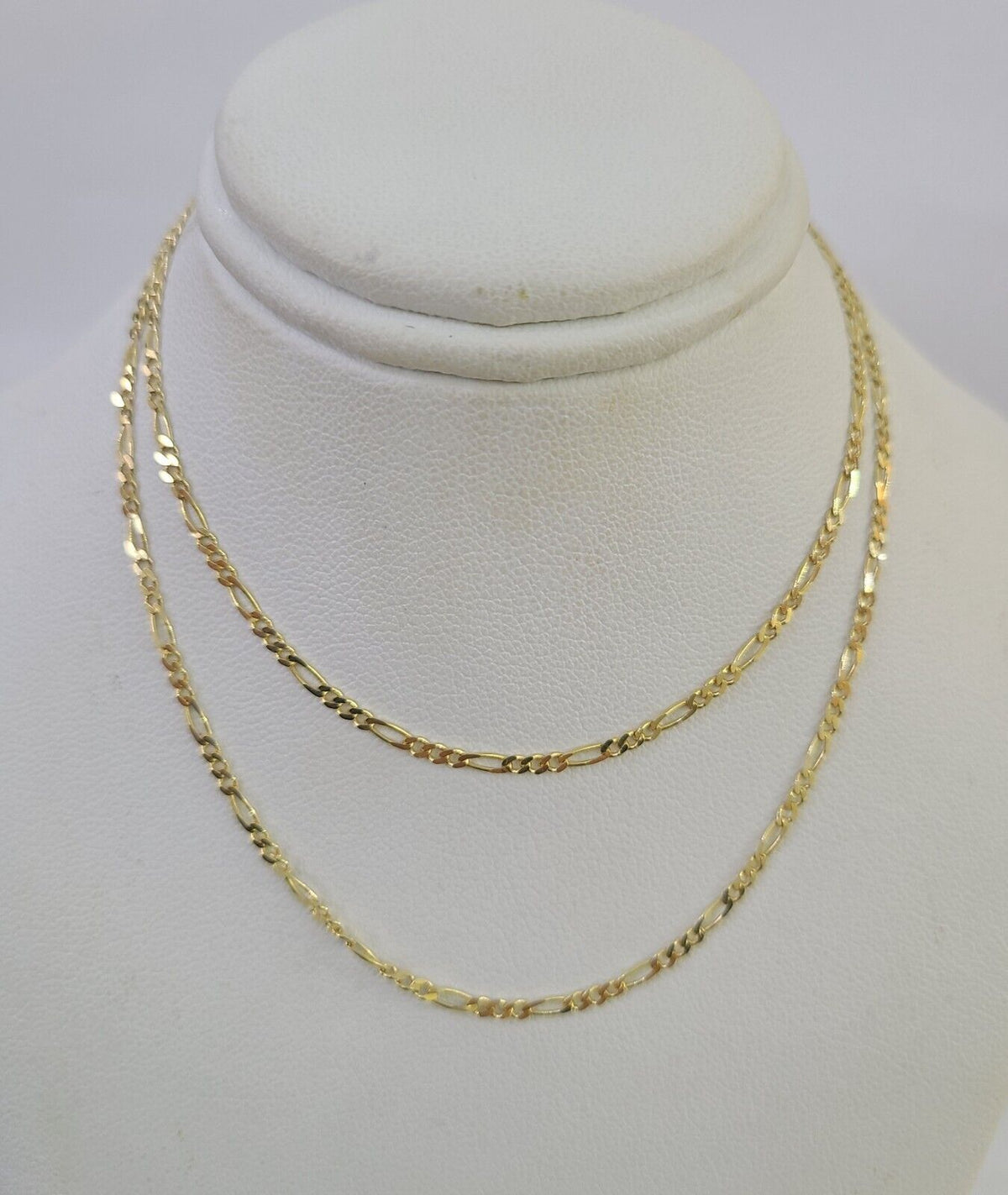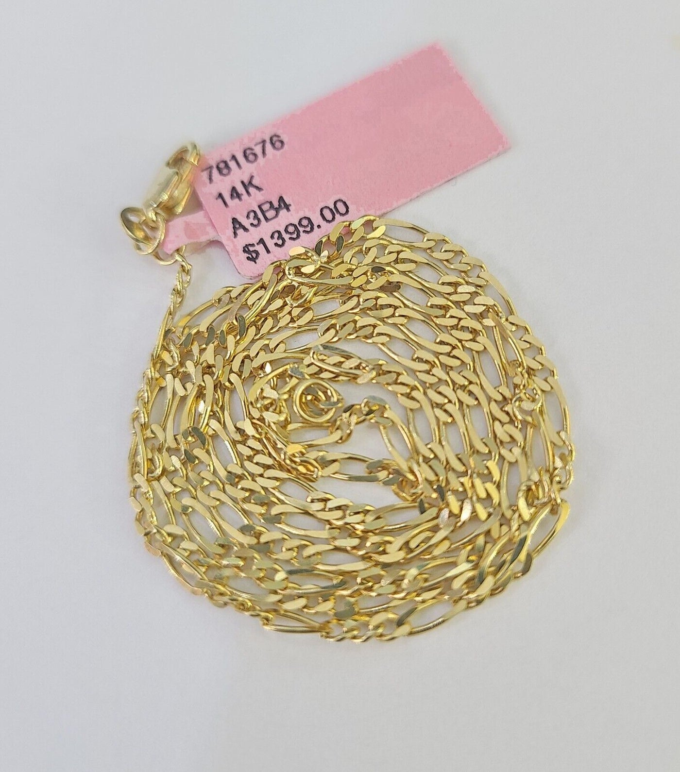 Is Presenting You with This Absolutely Stunning Real Solid 14k Yellow Gold Figaro Link chain 1mm, 20 Inches Necklace with Lobster Lock. The links are very strong and solid.��These Beautiful Chains will not tarnish, discolor, or fade because they are Pure 14K Gold.��We also have them in various another length. Please feel free to contact us if you have any queries regarding the item.