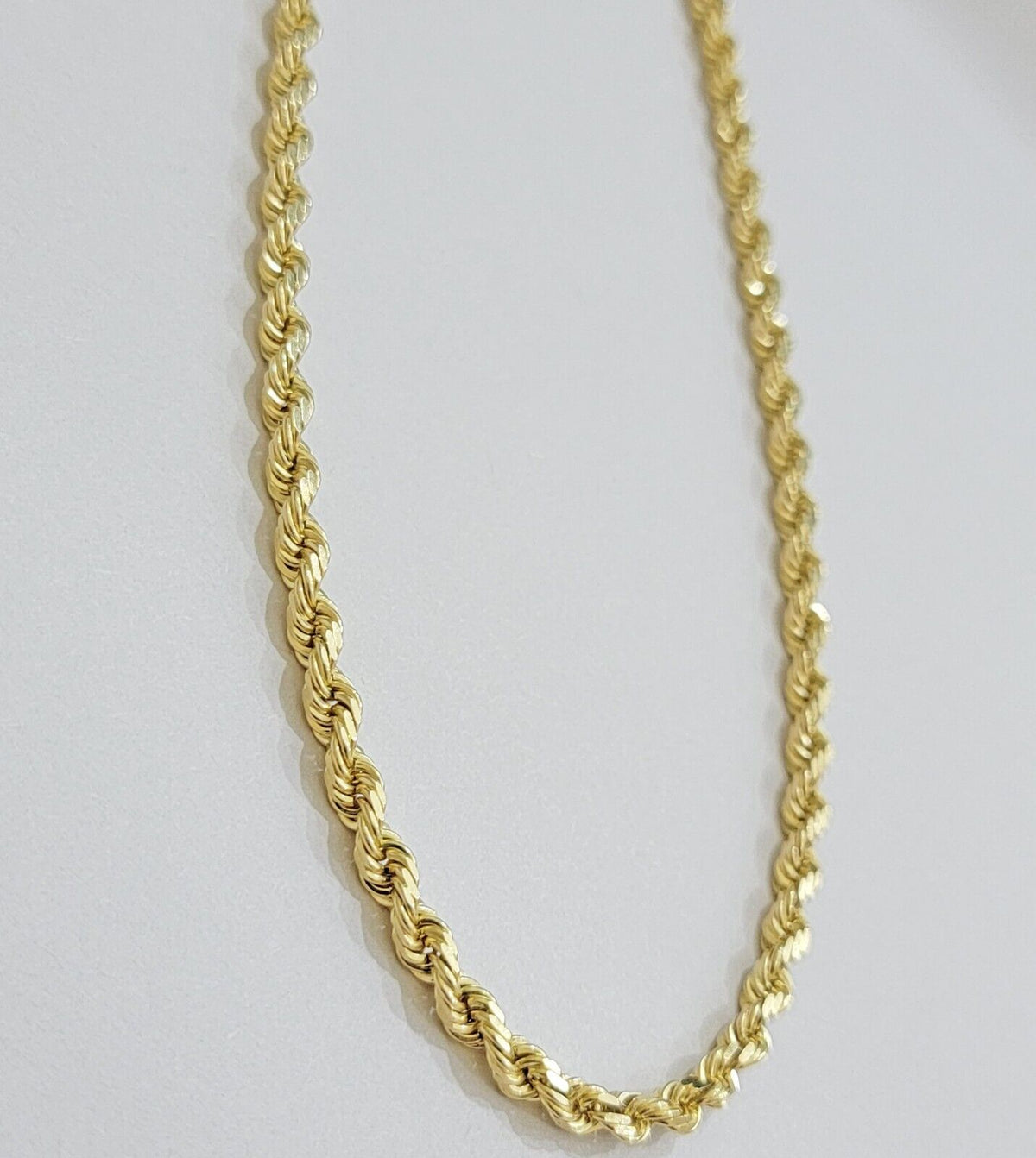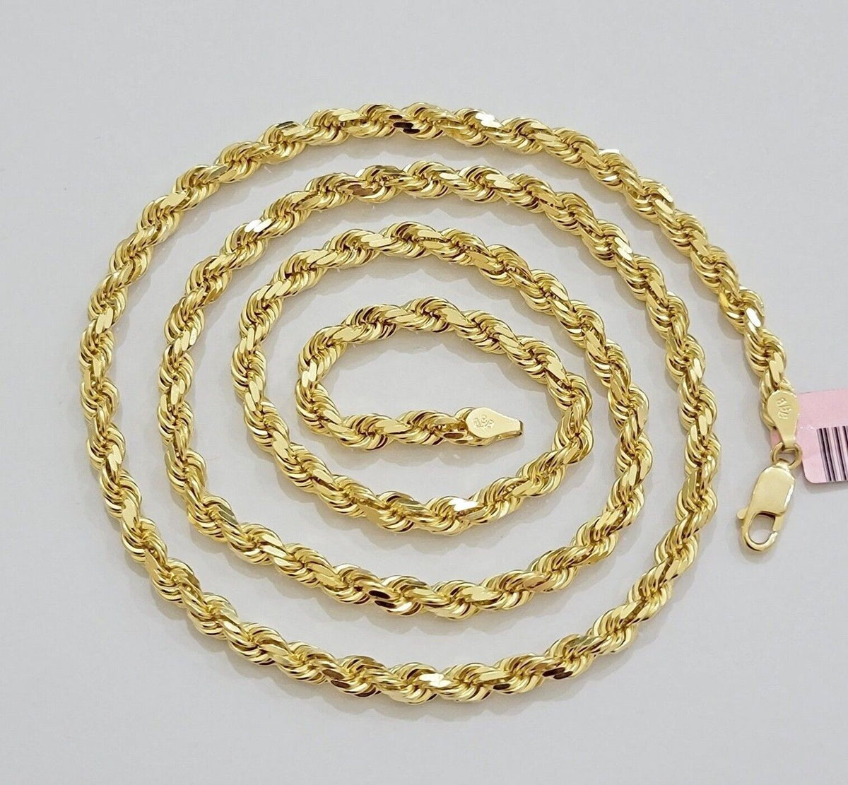 14k Yellow Gold Rope Chain Necklace 20 Inch 4mm Diamond Cut, Real 14kt SOLID