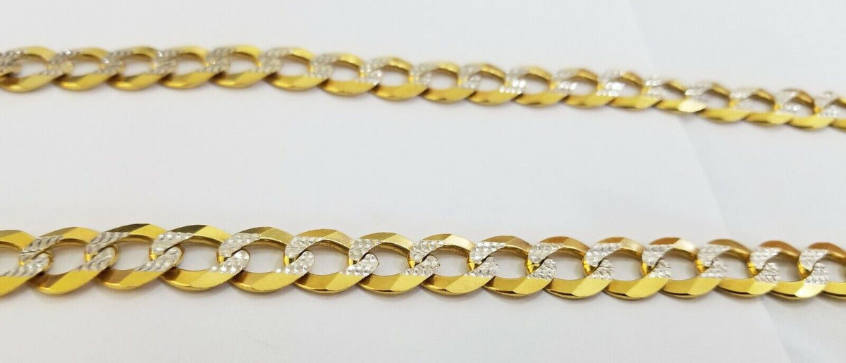 Is Presenting You with This Absolutely Stunning Real Solid (Heavy) 14k Yellow Gold Cuban Curb Link 11mm, 24 Inch Diamond Cuts Necklace with Lobster Lock. The links are very strong and solid. These Beautiful Chains will not tarnish, discolor, or fade because they are Pure 14K Gold. We also have them in various another length. Please feel free to contact us if you have any queries regarding the item.