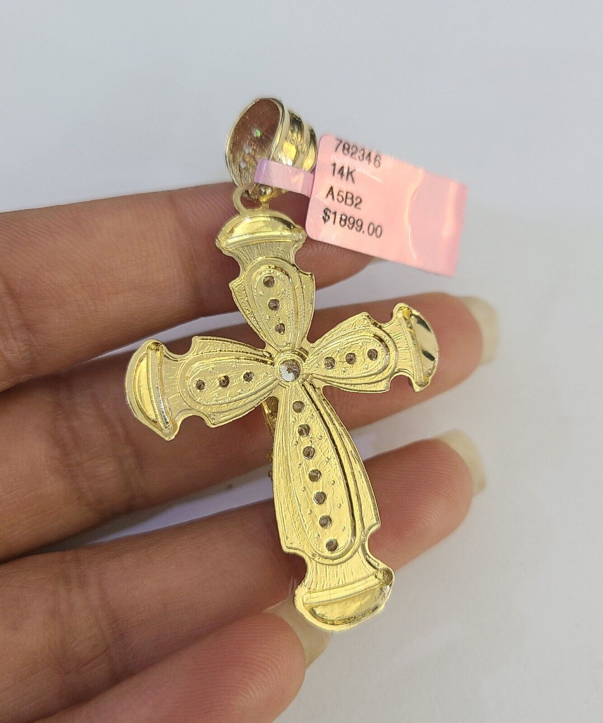 Is Presenting You with This Absolutely Stunning Real 14k Yellow Gold Miami Cuban Link Chain 5mm, 18 inch-30 inches, Lobster Lock with a 14k Jesus Cross Charm Pendant.These Beautiful chains and Pendant will not tarnish, discolor, or fade because they are Pure 14K Gold. We also have them in various another length and sizes. 20"-A11B2 A5B2