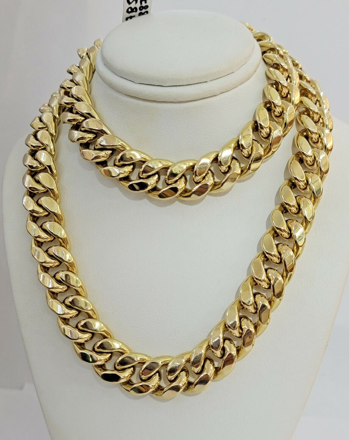 Real 14k Gold Necklace Miami Cuban Link Chain THICK 13mm 24" Yellow Gold MEN's