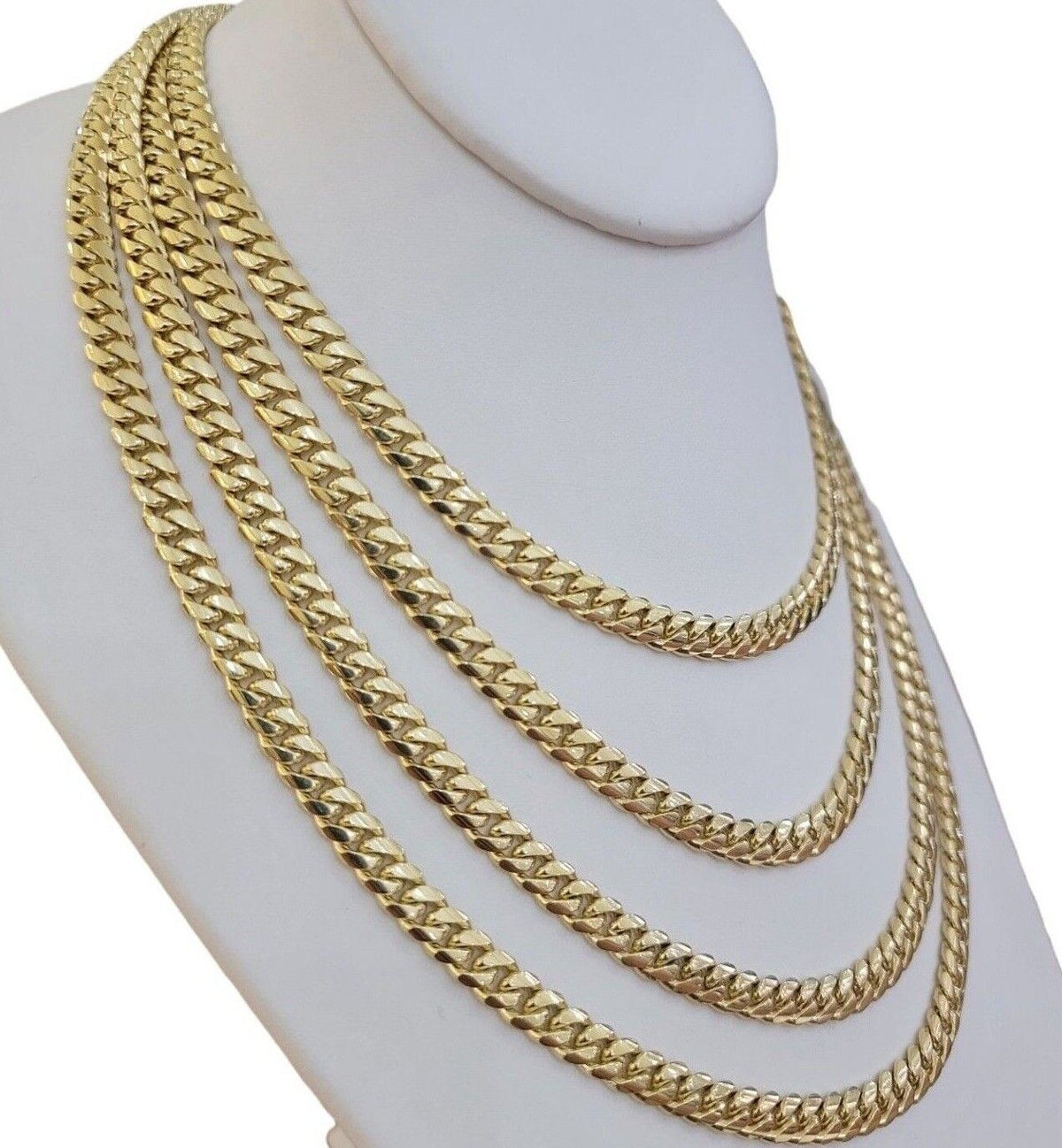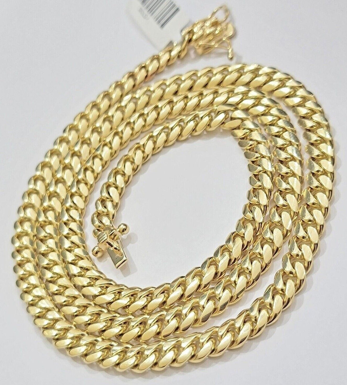 SOLID 14 K Yellow Gold ( Real , Not plated , Not filled ) Miami Cuban Link For Men's. The Width is 6 mm and 20-28 Inch Long . The Clasp is Box Lock. The chain is beautiful designed with Cuban-Link style. If you are not happy with the way it looks or feels, we do offer FREE Return shipping.