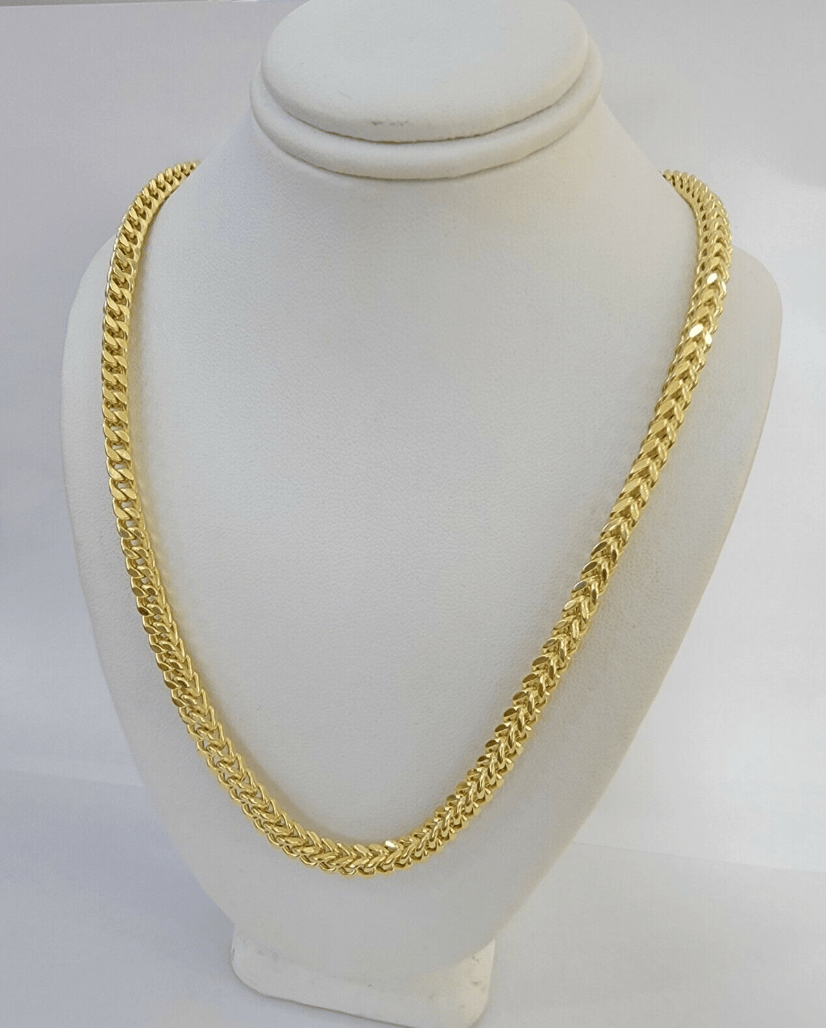 Real 14k Gold Necklace Franco Chain 4mm 22 Inch Diamond Cut Mens 14k Yellow Gold