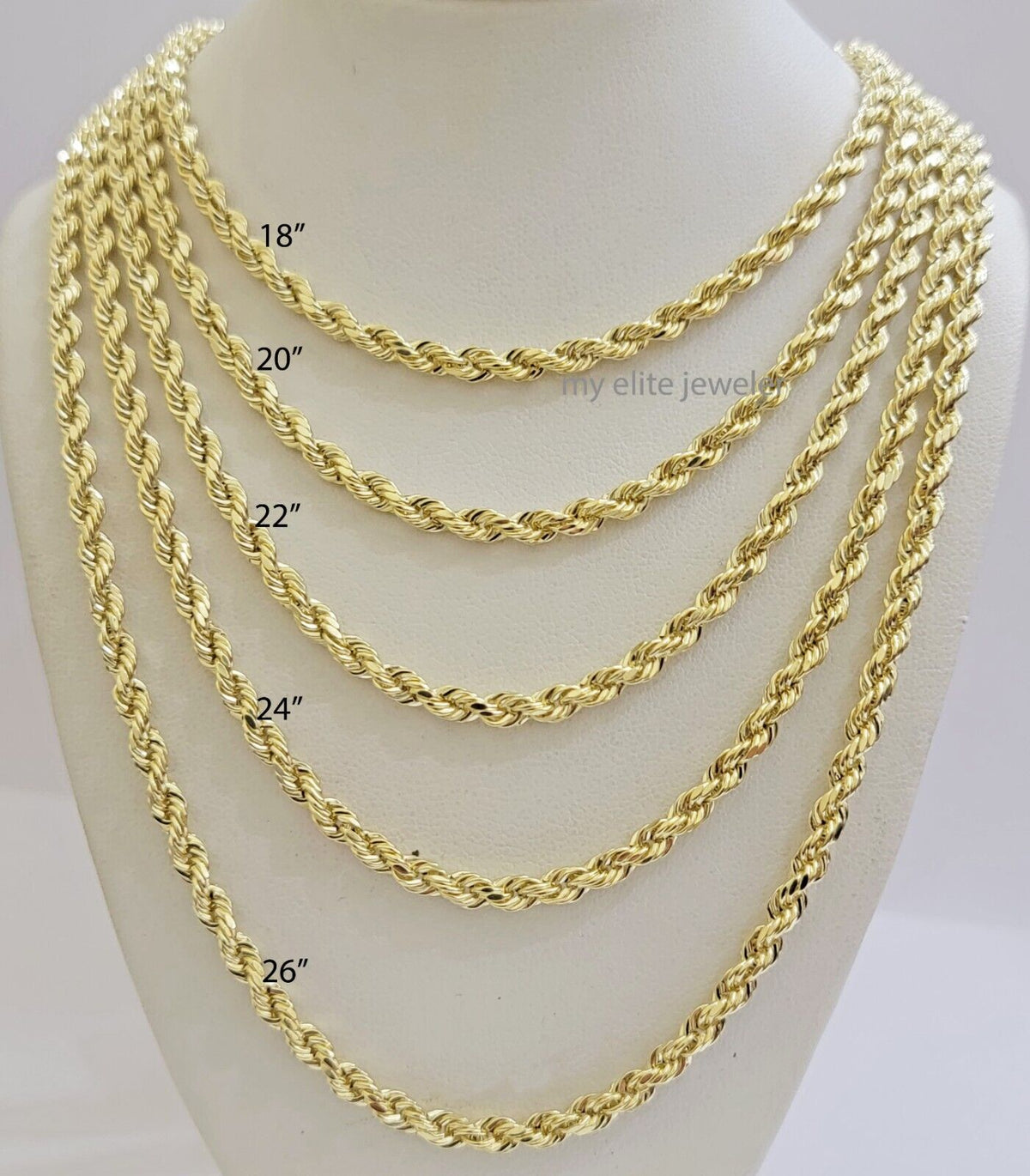 Real 14k Gold Rope chain 26 Inch 4mm Diamond Cuts 14kt Yellow Gold Men Women