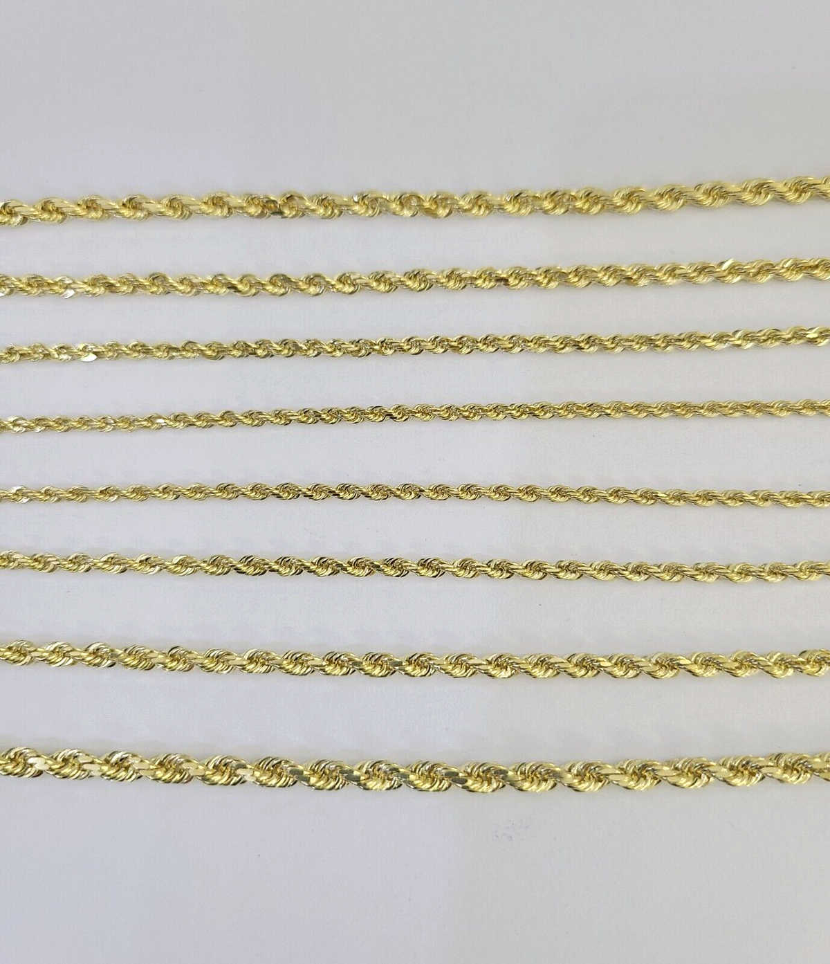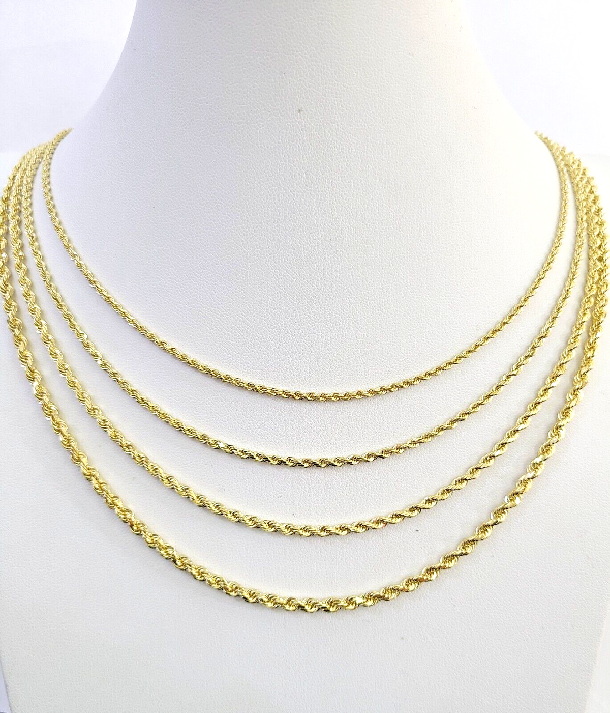 Is Presenting You with This Absolutely Stunning Real 14k Yellow Gold Rope chain 2mm 2.5mm 3mm 4mm lobster clasp. These Beautiful chains will not tarnish, discolor, or fade because they are Pure 14K Gold. We also have them in various another length. Please feel free to contact us if you have any queries regarding the item.
