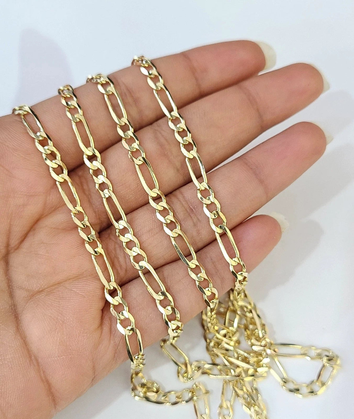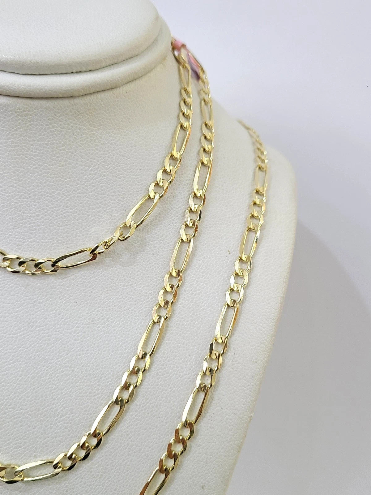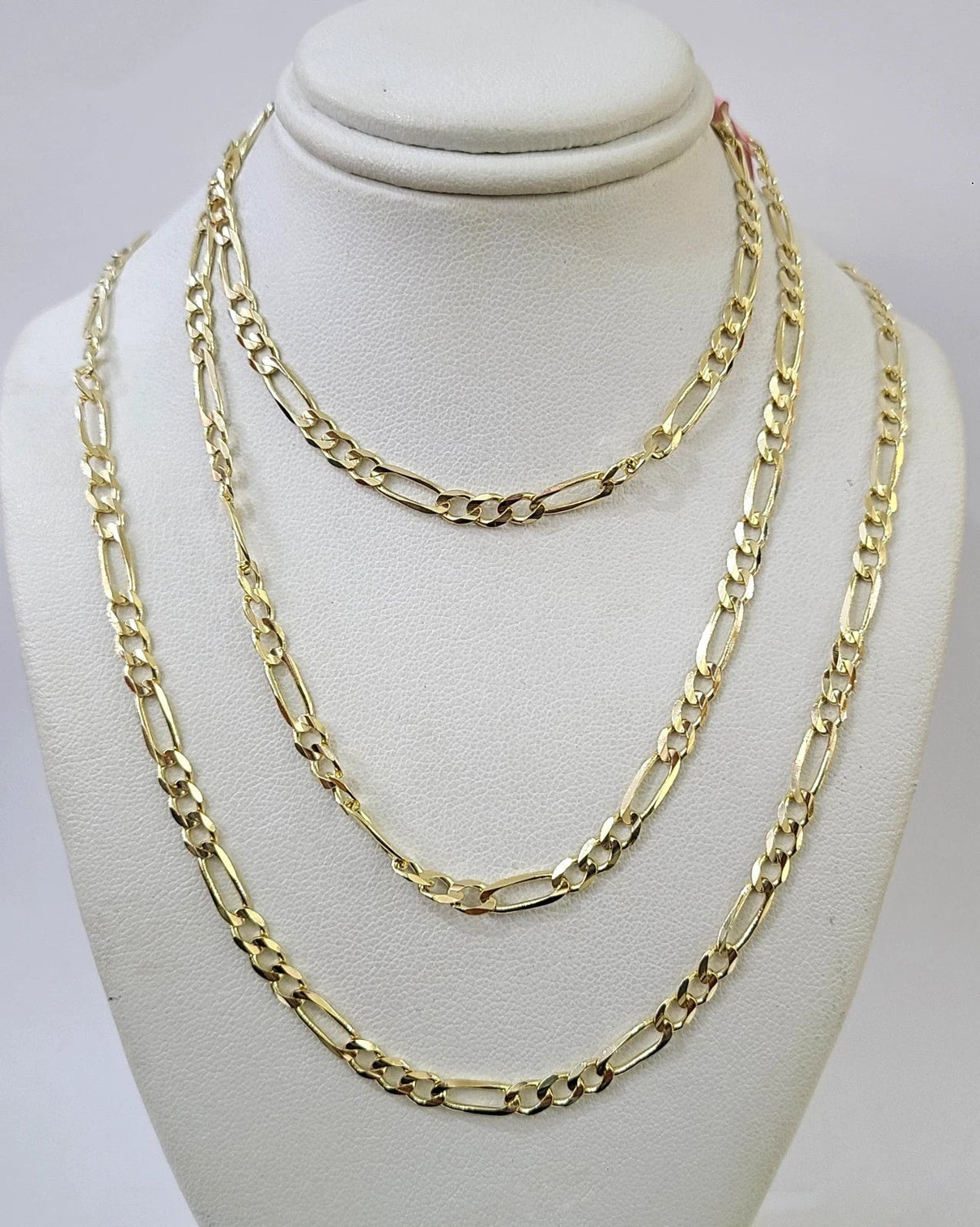 Real 14k Gold Chain Figaro Link Necklace 4mm Men Women 18-28 Inches 14kt