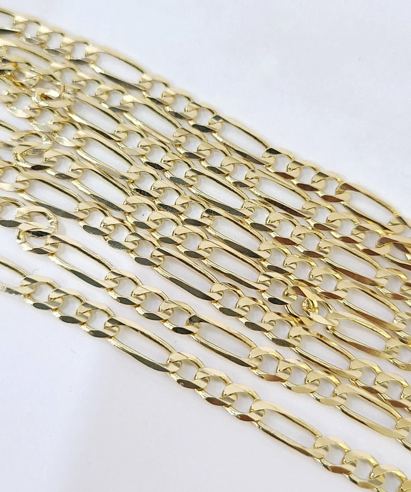 Real 14k Yellow Gold Figaro Link chain. The Width of the necklace is 4mm (approx.) and Various Length starting from 18 Inches - 28 Inches. The Clasp is lobster. If you are not happy with the way it looks or feels, we do offer 30 - Days FREE Return shipping. Contact us for more information.