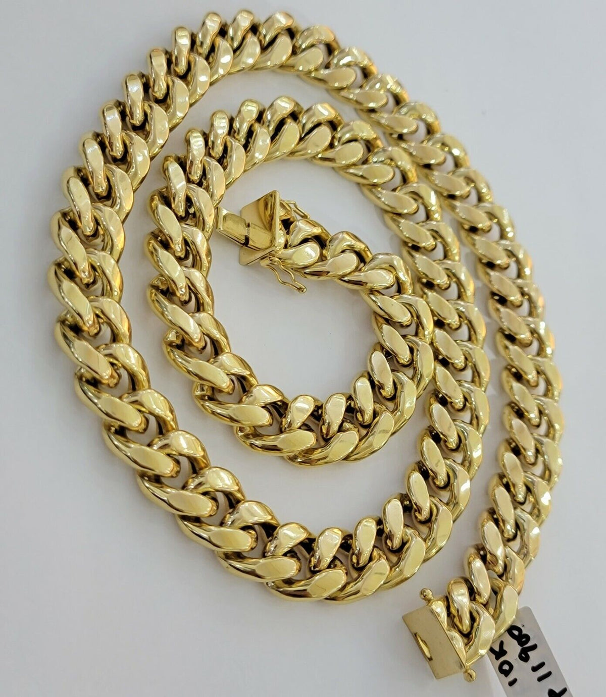 Real 14k Yellow Gold Chain Necklace 24 Inch 15mm Miami Cuban Link Mens 14kt